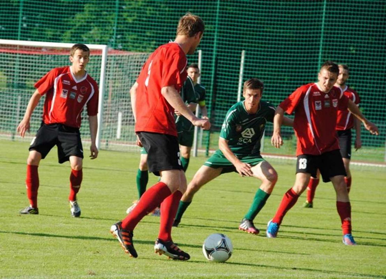 Oławianie próbowali pójść za ciosem, ambitnie atakowali, ale goście dobrze się bronili i wyprowadzali groźne kontry. Po jednej z nich, w 27 minucie, wywalczyli rzut wolny i główkujący z bliska Wojciech Kaczmarek trafił w poprzeczkę. W pewnym momencie zbyt daleko do przodu zapędził się Marcin Mazur, zastępujący na prawej obronie Kamila Dołgana. Lukę w defensywie gospodarzy wykorzystał Bartłomiej Szamotulski i po rajdzie strzelił z ostrego kąta, ale Filip Wichman wypiąstkował piłkę na rzut rożny.