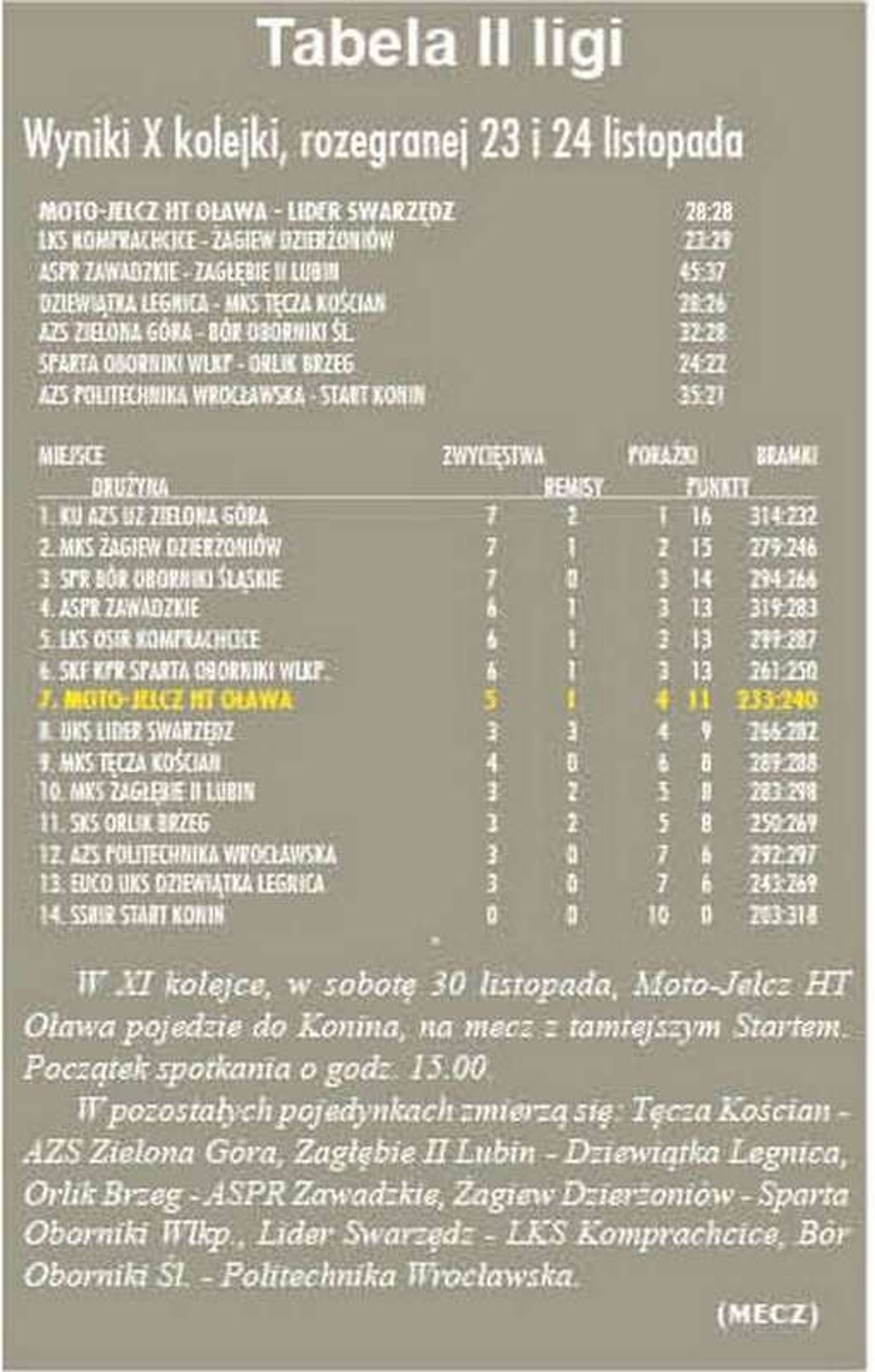 Oławianie byli faworytem, chcieli wygrać to spotkanie, by nie powiększyć czteropunktowej straty do lidera z Zielonej Góry. Goście ze Swarzędza grają bardzo nierówno. UKS Lider już w tym sezonie zremisował w Zielonej Górze, a także przegrał przed własną publicznością ze słabiutką Tęczą Kościan.