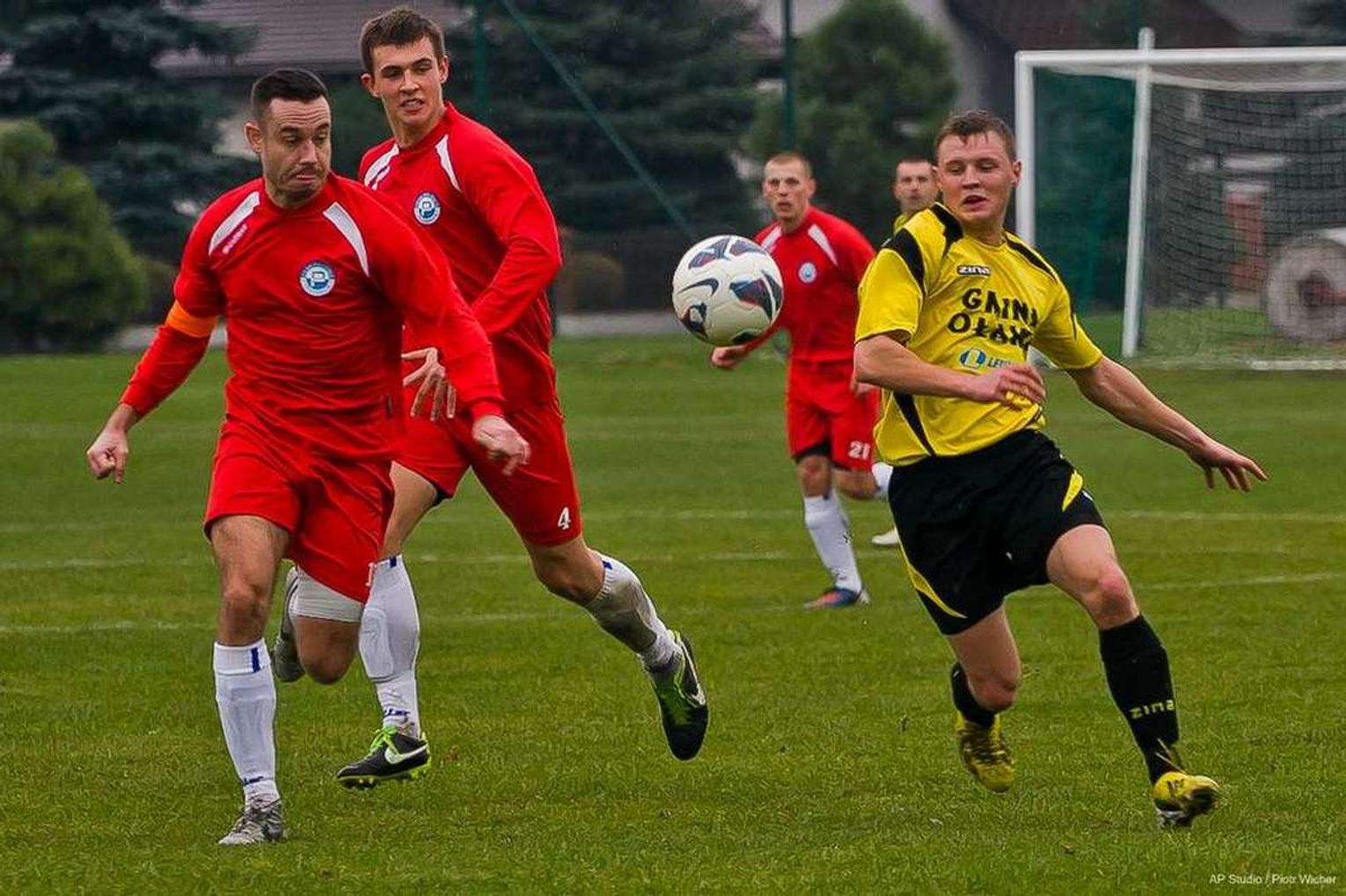 W drugiej połowie wymiana ciosów rozgorzała na dobre. Najpierw ładną zespołową akcję gospodarzy i dośrodkowanie Wojciecha Strójwąsa, wykończył główką Marek Budny, podwyższając prowadzenie Foto-Higieny. Potem miejscowi nadal przeważali, ale powtórzył się scenariusz z pierwszej połowy. Prostopadłe podanie Radosława Belli otworzyło drogę do bramki Bergierowi, który w sytuacji sam na sam pokonał Mazura. Po dziesięciu minutach piłka znowu zatrzepotała w bramce gacian. Rzut wolny z 25 metrów wykonywał Bergier, piłka zmierzała w lewy róg bramki, ale Mazur zdołał ją wybić. Zrobił to tak niefortunnie, że trafiła do Dawida Cychola. Ten znalazł jeszcze lepiej ustawionego Jakóbczyka, który z najbliższej odległości wyrównał na 3:3.