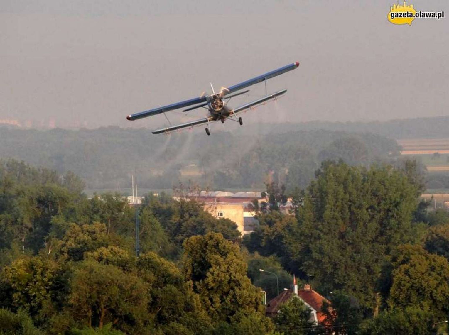25 lipca od godziny 19.00 nad Oławą latał dwupłatowiec. Rozpylał preparat, który ma chociaż na pewien czas uwolnić mieszkańców od komarów