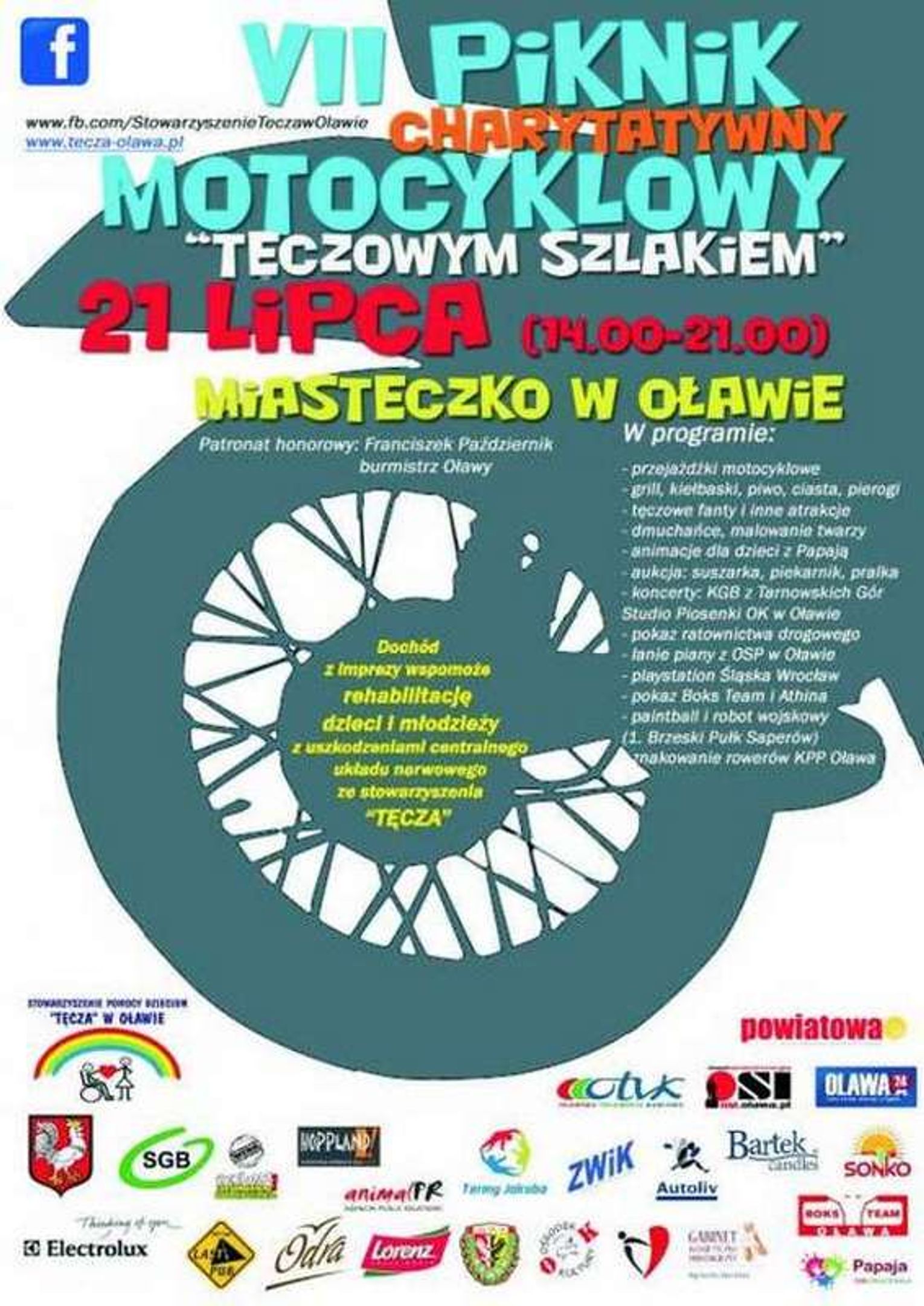 Oławskie Stowarzyszenie Pomocy Dzieciom "Tęcza" wraz z wrocławskimi i oławskimi motocyklistami już po raz siódmy organizuje charytatywną imprezę, która odbędzie się w niedzielę 21 lipca, na Miasteczku