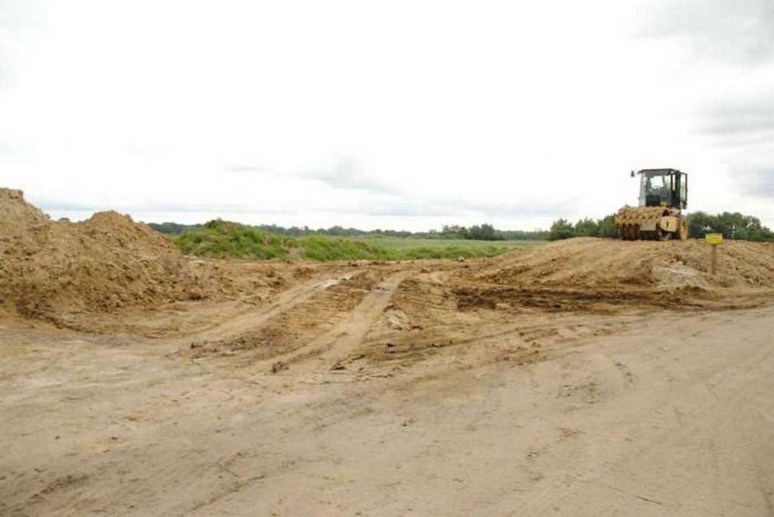 Na fot. Wał przeciwpowodziowy oddzielający zabudowania od terenu zalewowego jest modernizowany. Obecnie to wyniesienie terenu z gliny bez zabezpieczeń. Zdjęto z niego humus. W miejscu gdzie utworzono drogę dojazdową jest wyrwa. Od kilku dni po zakończeniu prac jest jednak zasypywana.