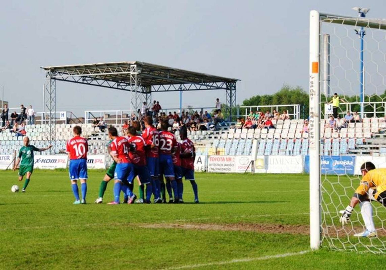 Tzw. „gol z niczego” jednak nie załamał oławian, którzy od tego momentu osiągnęli zdecydowaną przewagę. Niemal każda ich akcja pachniała bramką. Gospodarze często bronili się faulami. Dwa sprokurował w krótkim czasie Daniel da Silva i musiał jeszcze przed gwizdkiem na przerwę powędrować do szatni. To drugie przewinienie bezbłędnie wykorzystał Waldemar Gancarczyk, po profesorsku wykonując rzut wolny.