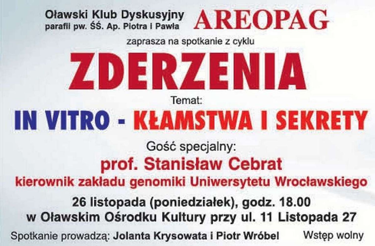 Gościem specjalnym będzie prof. Stanisław Cebrat. Początek o godz. 18.00 w oławskim Ośrodku Kultury.