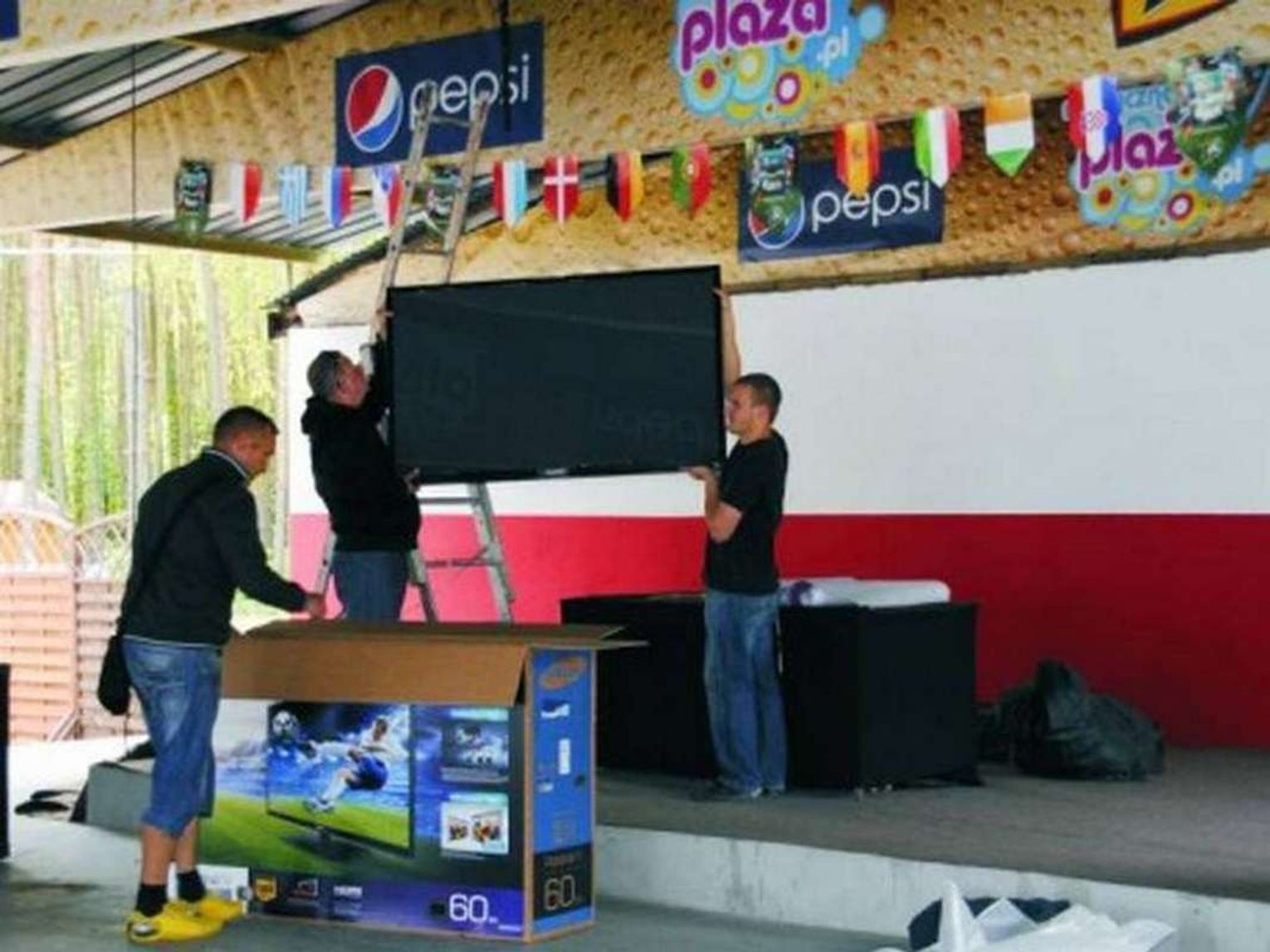 Na "Muzycznej plaży" pod zadaszeniem zawisło sześć telebimów, z obrazem w wersji HD. Ustawione są tak, aby każdy kibic miał dobry widok z dowolnego miejsca. Przygotowano ponad 500 siedzeń. Klimatu dodają dekoracja i pewność, że mecz można będzie obejrzeć niezależnie od pogody. Wystarczy odpowiednie towarzystwo.