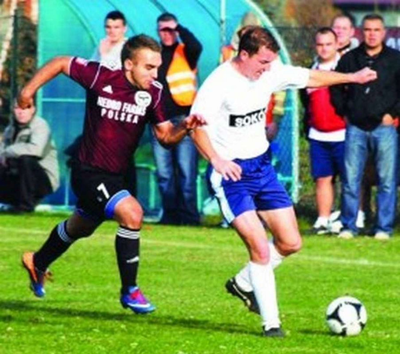 Goście zaatakowali po dwudziestu minutach. Piłkę otrzymał przed polem karnym Sokoła Michał Kapałczyński, ale jego płaskie uderzenie obronił Artur Walczak. Potem Sebastian Skrętkowicz dośrodkował precyzyjnie na głowę Artura Sieradzkiego, ale bramkarz gospodarzy był dobrze ustawiony. Z kolei lewą stroną przedarł się Daniel Czajkowski, wpadł na pole karne i wycofał piłkę na 16 metr, ale Łukasz Borczyński nieczysto trafił w piłkę i ta przeszła obok słupka.