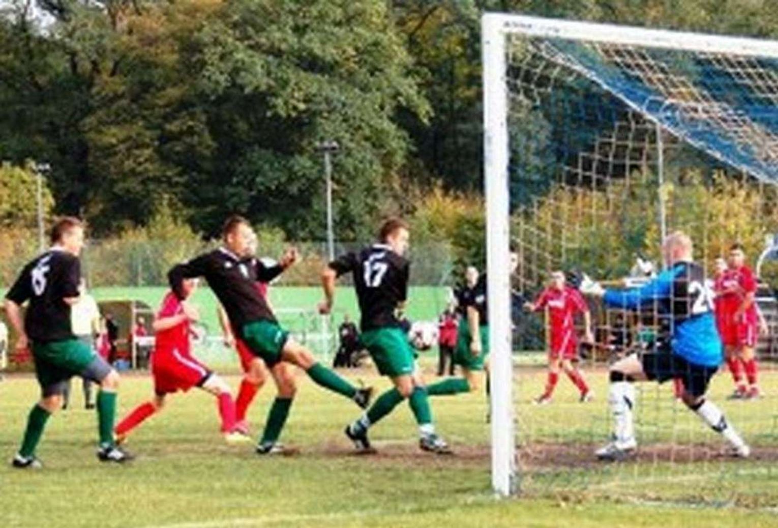 O pierwszej połowie pojedynku Motobi z MKS można byłoby w zasadzie napisać, że się odbyła, gdyby nie kilka groźnych sytuacji podbramkowych. Pierwszą stworzyli oławianie już w 2 minucie. Mateusz Gancarczyk zagrał prostopadle do Arkadiusza Synówki, który wyprzedził obrońców, wyszedł na czystą pozycję, ale strzelając w długi róg bramki, nie trafił. W 5 minucie dalekim wyrzutem z autu popisał się były gracz MKS Radosław Parada, piłka odbijała się od nóg oławskich obrońców, aż w końcu trafiła do Kamila Mierzwy, który strzelił chytrze z 10 metrów, lecz dobrą interwencją popisał się Sebastian Sobczak, parując piłkę na słupek. Bramkarzowi MKS pomógł jeszcze Michał Sikorski wybijając futbolówkę na rzut rożny. Potem dwie dobre sytuacje strzeleckie mieli Mierzwa i Piotr Dziegleski, ale nie trafili w bramkę MKS. Oławianie ożywili się pod koniec pierwszej połowy. Już w doliczonym czasie gry skiksował Piotr Jawny, a ratując sytuację, złapał Arkadiusza Synówkę za koszulkę. Goście domagali się czerwonej kartki, ale arbiter najwyraźniej chciał oszczędzić kapitana Motobi, świętującego kilka dni wcześniej czterdzieste urodziny. Uznał, że Synówka nie biegł w stronę bramki i dlatego wyciągnął tylko żółtą kartkę i podyktował wolnego dla MKS. Strzelającemu zwykle skutecznie w takich sytuacjach Dominikowi Wejerowskiemu tym razem zabrakło szczęścia, bo piłka odbiła się od wewnętrznej części słupka, ale nie wpadła do bramki. Próbował ją tam wpakować głową Mohammed Donzo, ale arbiter odgwizdał spalonego.