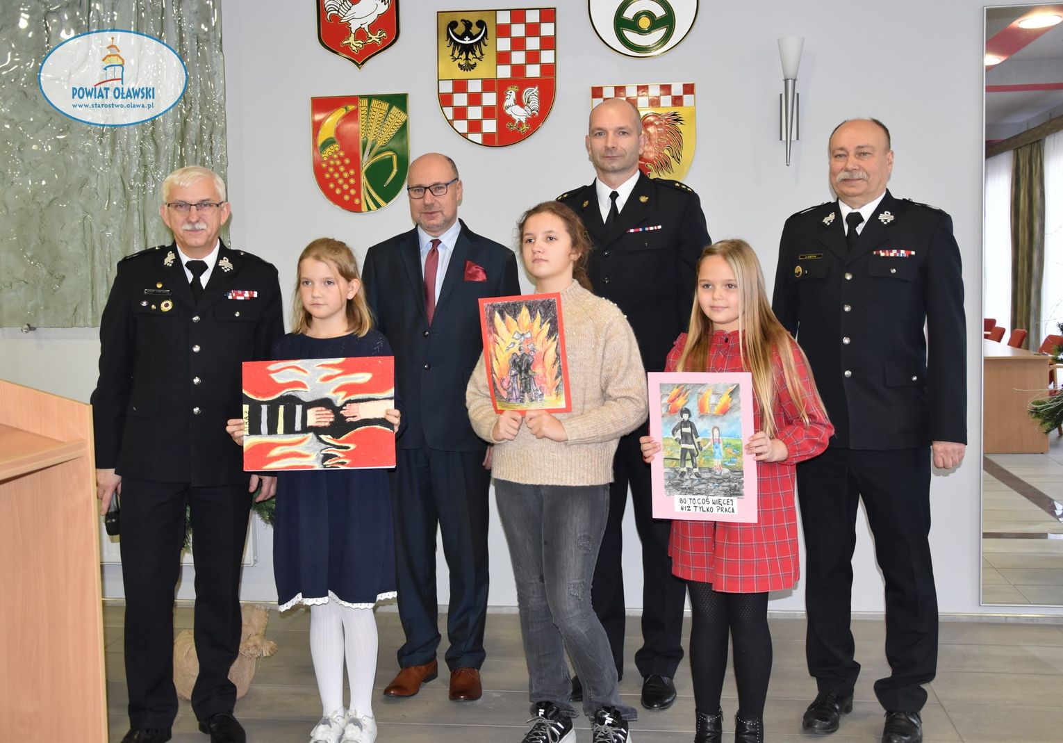 Autorom najlepszych prac dyplomy i nagrody wręczyli wicestarosta Witold Niemirowski, komendant KP PSP w Oławie kpt. Bartłomiej Marcinów oraz byli komendanci oławskiej straży: prezes Zarządu Oddziału Powiatowego ZOSP RP w Oławie Jerzy Łabowski i wiceprezes tego związku Jan Ciętak.
