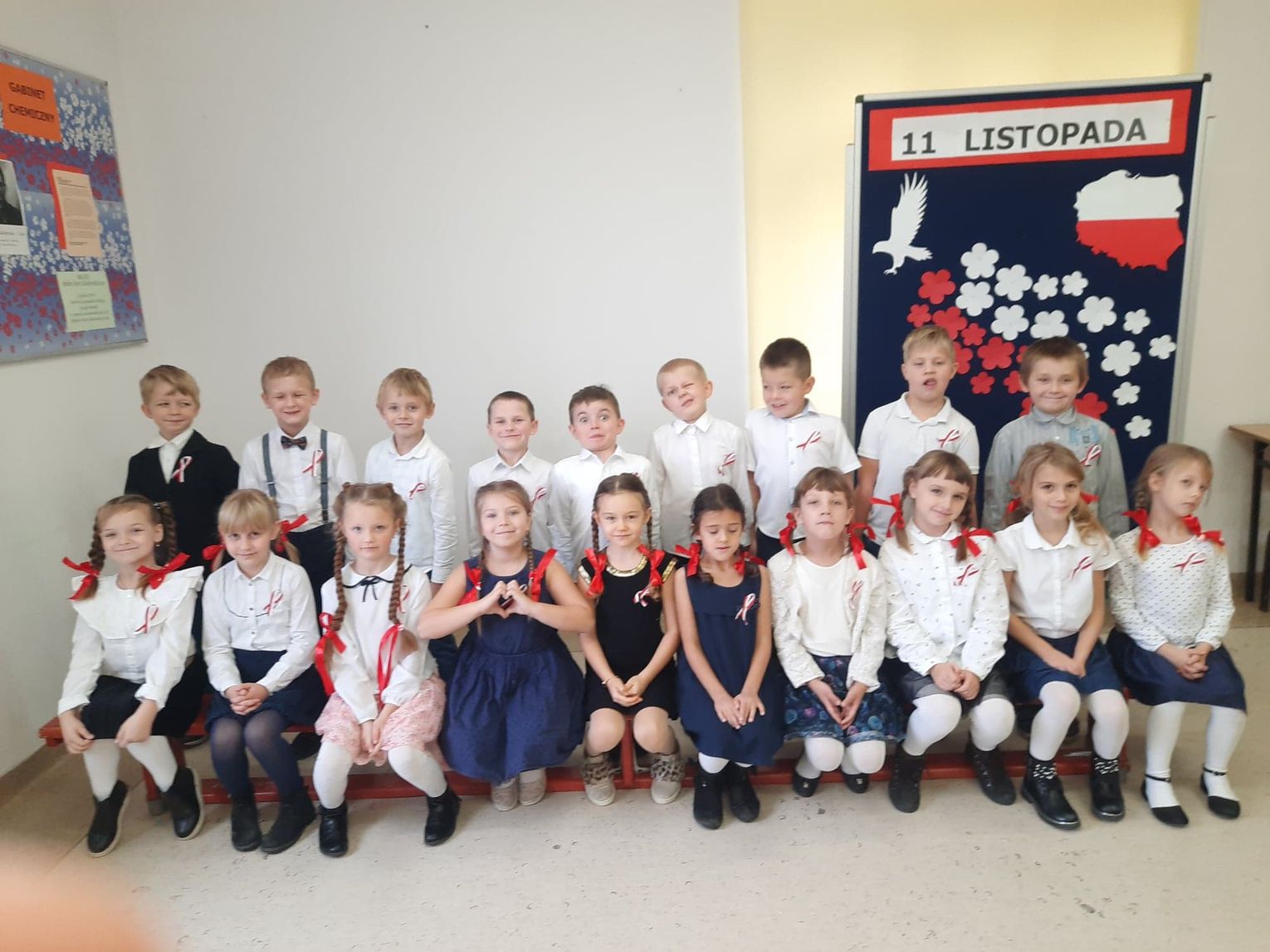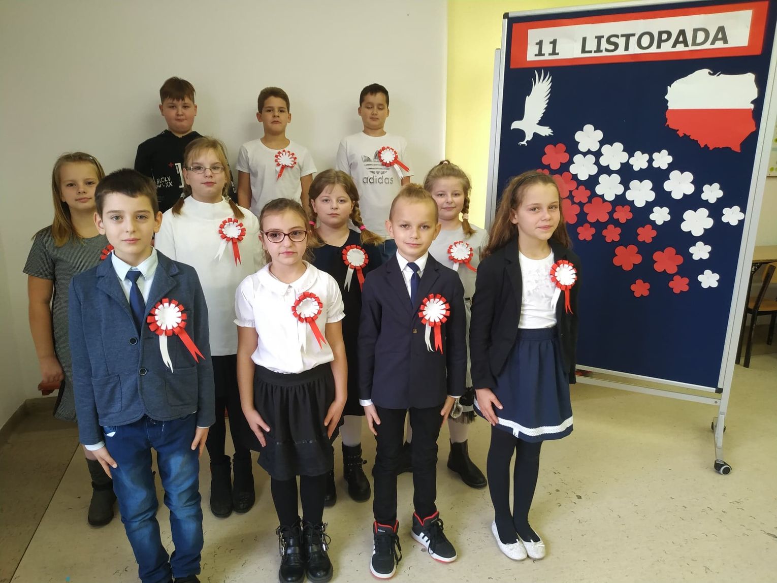Tradycją Gminnej Szkoły Podstawowej jest Przegląd Pieśni Patriotycznych. Każda klasa przygotowuje jedną piosenkę i przedstawia ją podczas spotkania. W tym roku uroczystość miała inną formę w klasach młodszych