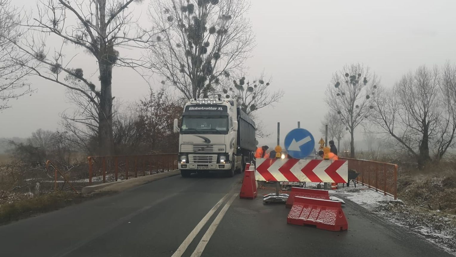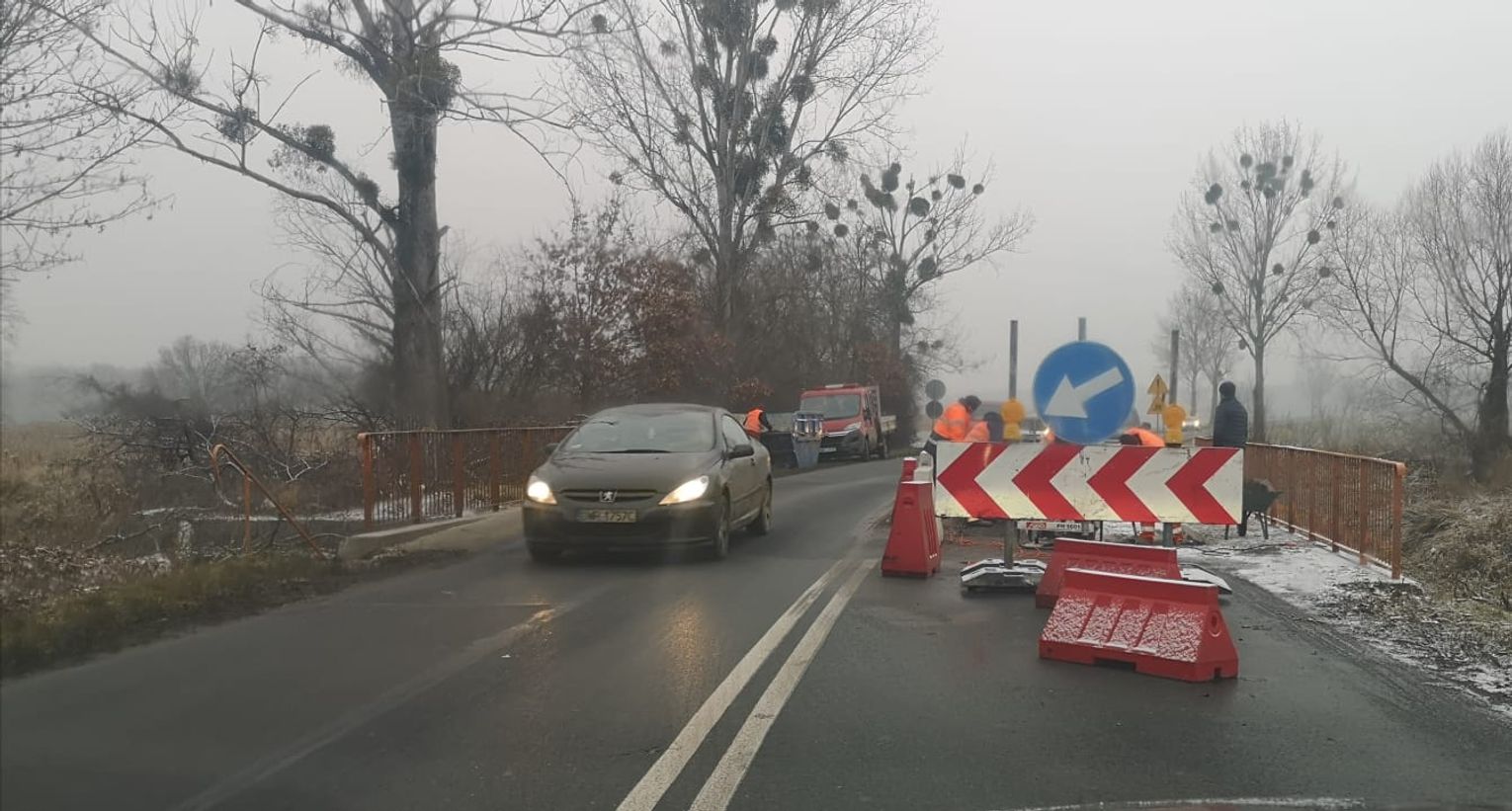 Na mostku za Starym Otokiem, trzeba uważać, zwłaszcza gdy ślisko, bo jest zwężenie drogi do jednego pasa.