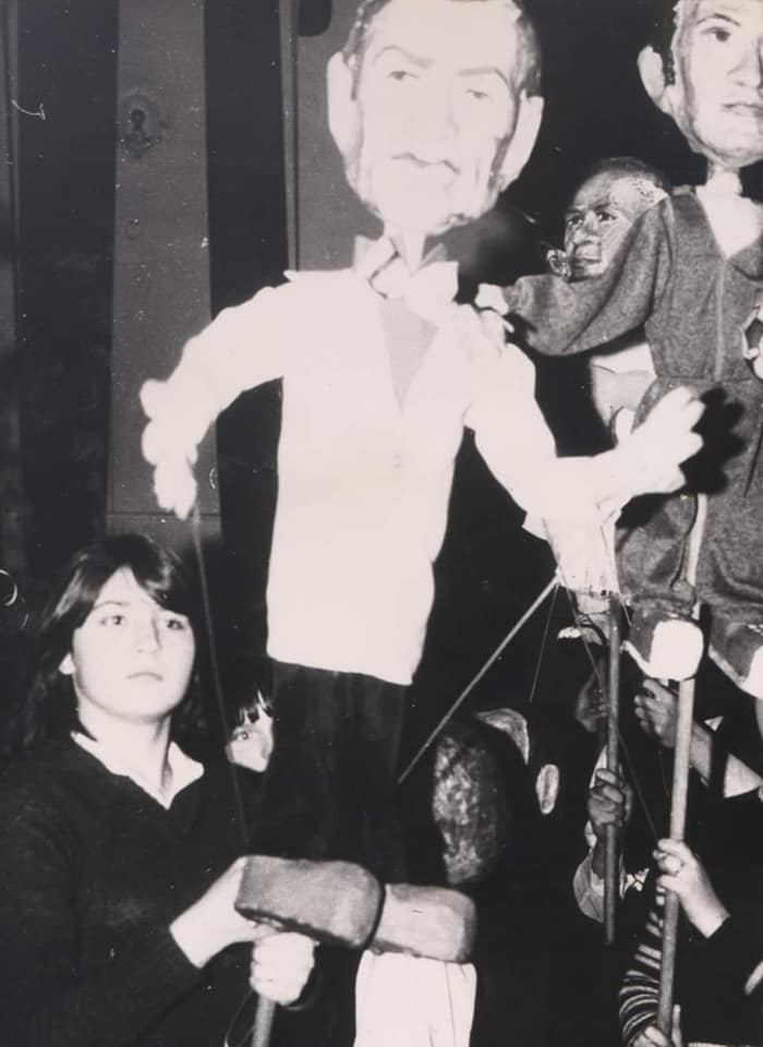 Bożen Potoczny: - Przeglądając swoje albumy w sylwestra 2020, w czasie pandemii, przypomniałam sobie, że 40 lat temu, w Ośrodku Kultury w Oławie robiliśmy Szopkę Noworoczną. Uczestniczyli w tym wszyscy pracownicy, a mój młodzieżowy zespół teatralny Bajka był animatorem wielkich, własnoręcznie robionych kukieł. Kazia Rudnicka kleiła z gliny naturalnej wielkości głowy oławskich osobistości, wg zdjęć, potem oklejaliśmy je papierem i po wysuszeniu dwóch połówek i sklejeniu ich trzeba było farbami uzyskać podobieństwo...