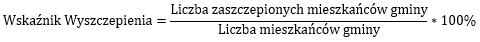 Dodatkowo dla każdej gminy zostały obliczone wskaźniki wyszczepienia, zdefiniowane według wzoru: