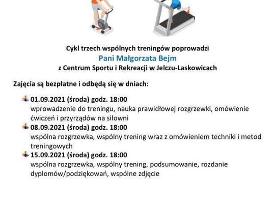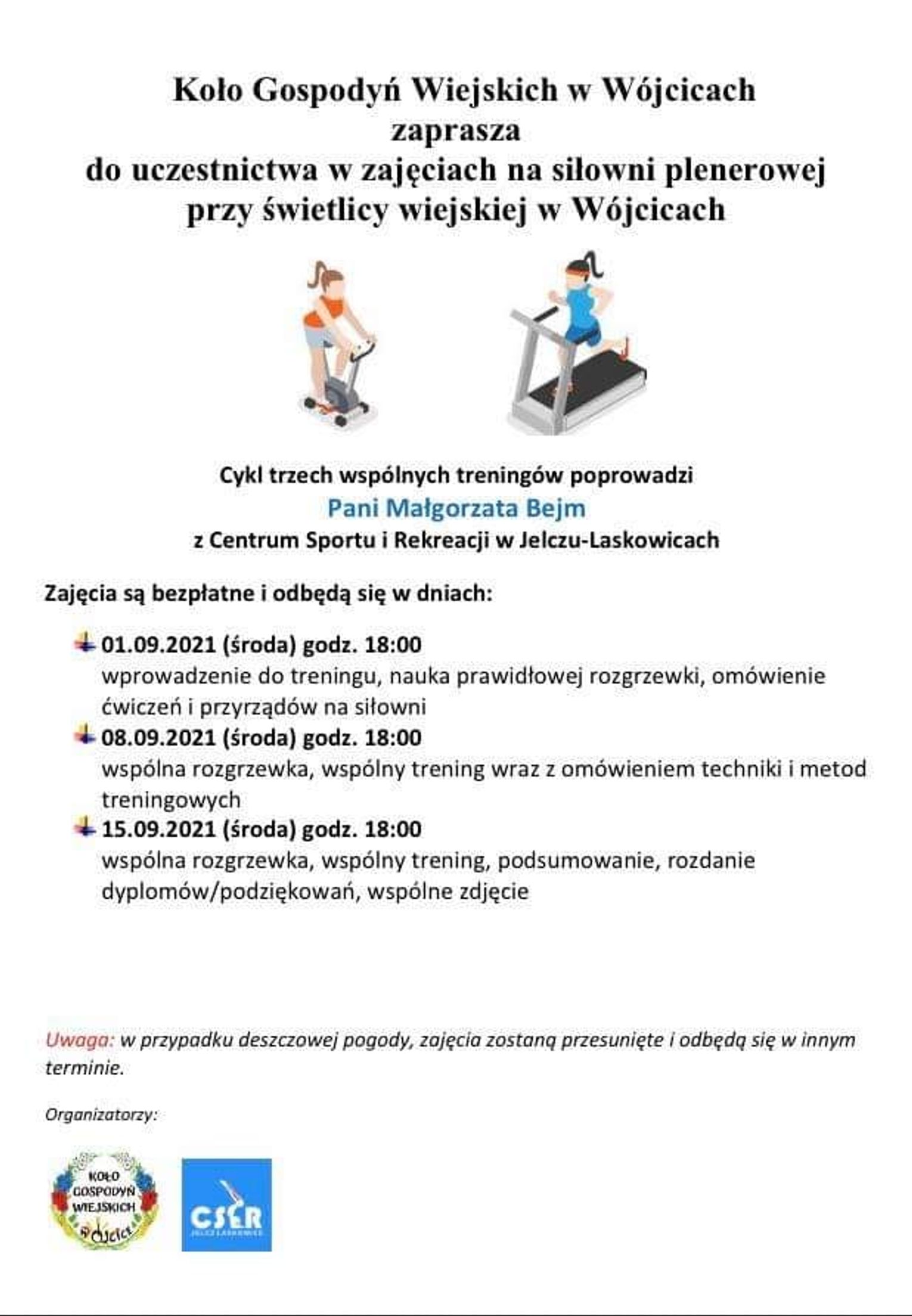 1 wrześnie rozpoczął się się cykl trzech wspólnych treningów na siłowni plenerowej za świetlicą wiejską w Wójcicach, prowadzonych przez instruktorkę z Centrum Sportu i Rekreacji w Jelczu-Laskowicach.