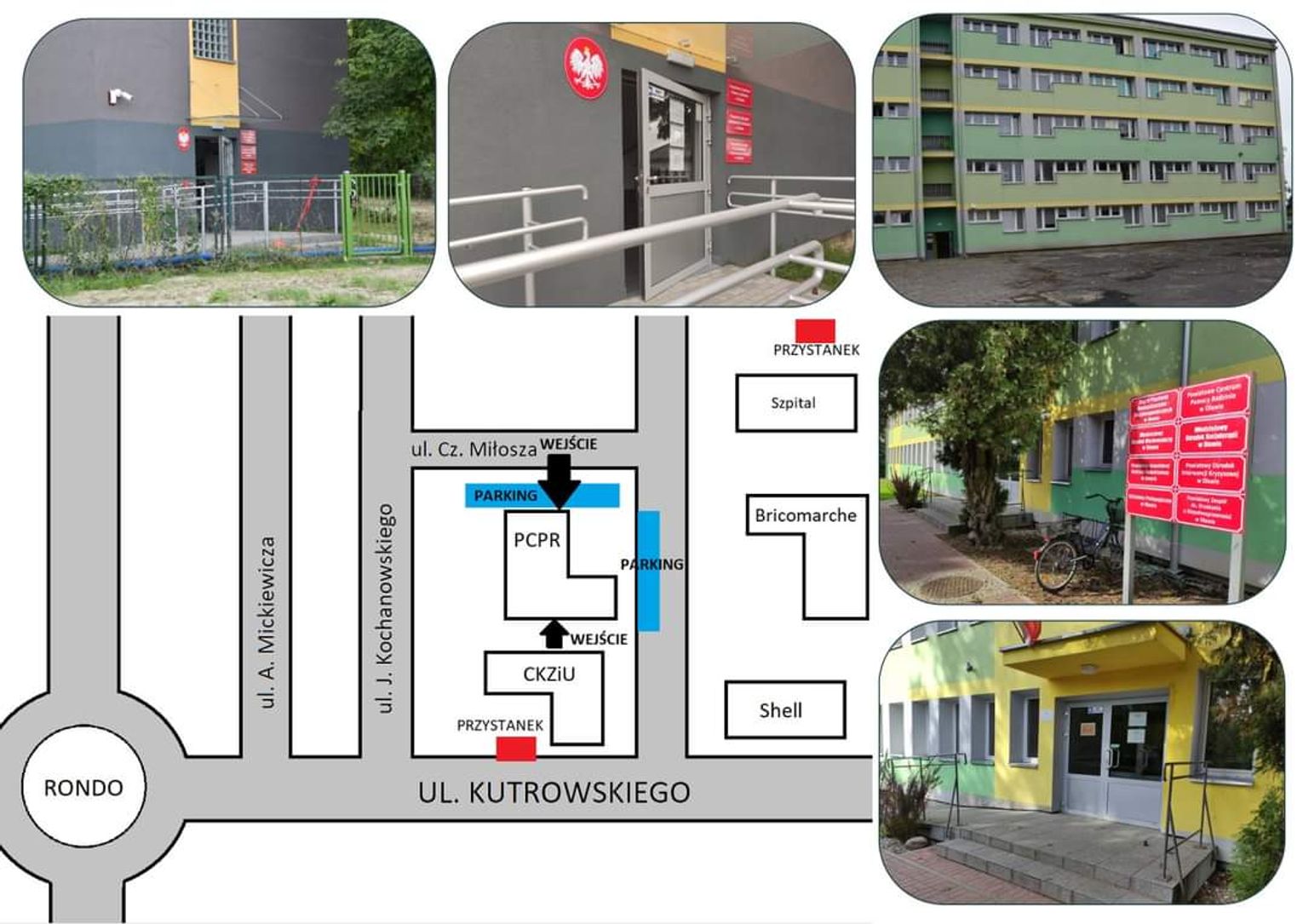 Obsługa klientów PCPRu odbywa się w nowej siedzibie przy ul. Kutrowskiego 31 A, od poniedziałku do piątku, w godzinach 7.30 - 15.30. Poniżej dołączamy pomocną mapkę. Na stronie www starostwa opublikowano kursy autobusów, którymi dostaniecie się do PCPRu Link tutaj