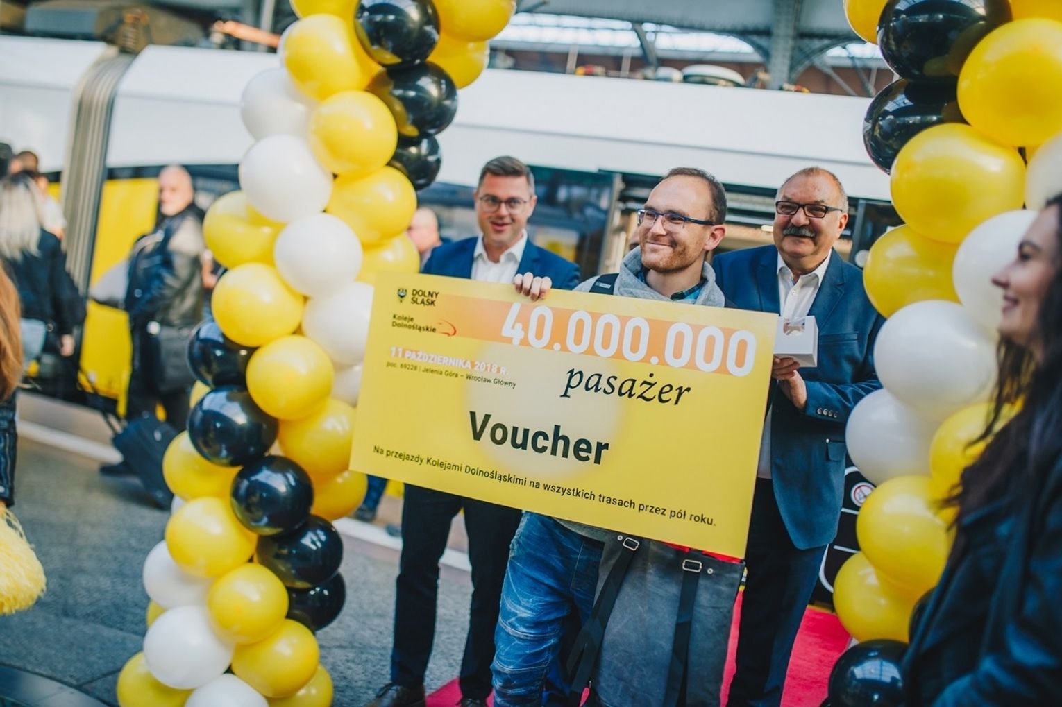 Mieszkaniec Dolnego Śląska podróżujący w czwartek 11 października szynobusem Kolei Dolnośląskich relacji Jelenia Góra - Wrocław okazał się być 40. milionowym pasażerem naszego regionalnego przewoźnika. Ta ogromna liczba, która pokazuje, że utworzenie Kolei Dolnośląskich i konsekwentne rozwijanie ich oferty jest doceniane przez Dolnoślązaków.
