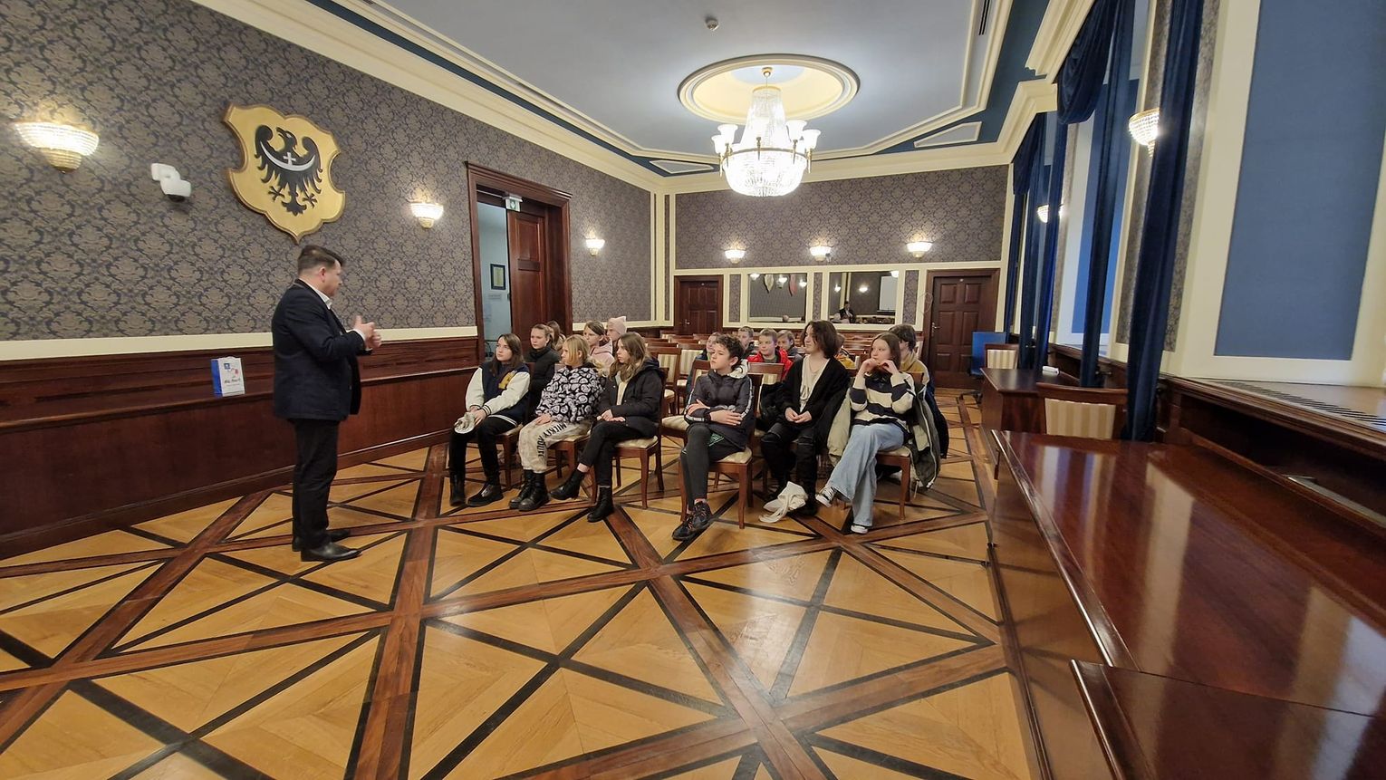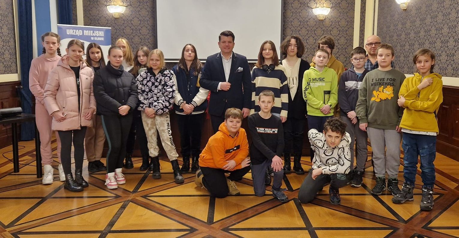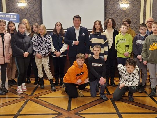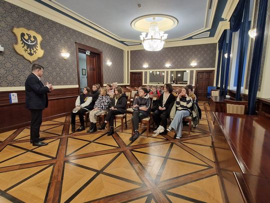 Klasa 6A ze Szkoły Podstawowej nr 3 wraz z nauczycielem Aleksandrem Zborowskim odwiedziła dziś oławski ratusz.