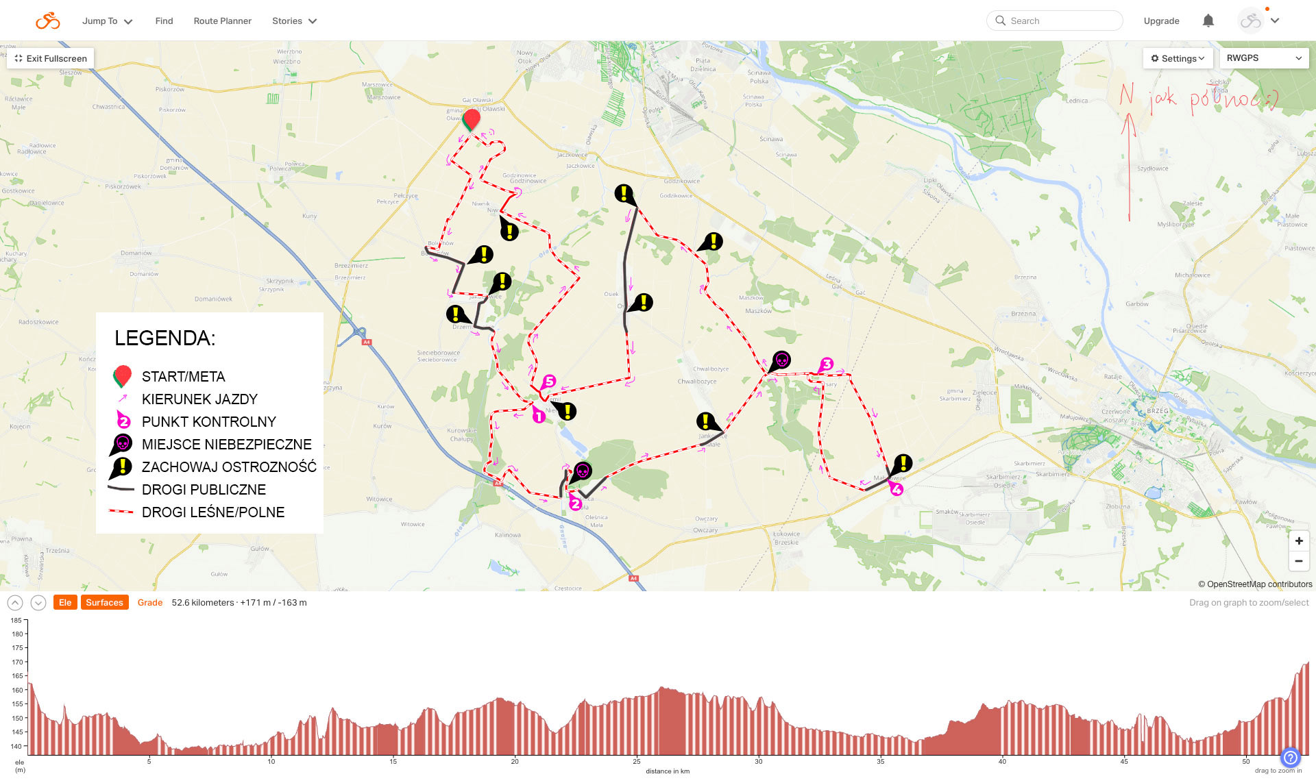 Trasa liczy około 60 km, w 80% po drogach polnych i leśnych, 20% to drogi publiczne o niskim natężeniu ruchu samochodowego, w południowo-wschodniej części powiatu oławskiego. Na trasie będą znajdować się punkty kontrolne, które będą zapisywane w karcie rajdu. Czasem będzie to pieczątka, a czasem zagadka, więc wszystkie zmysły wyostrzone!