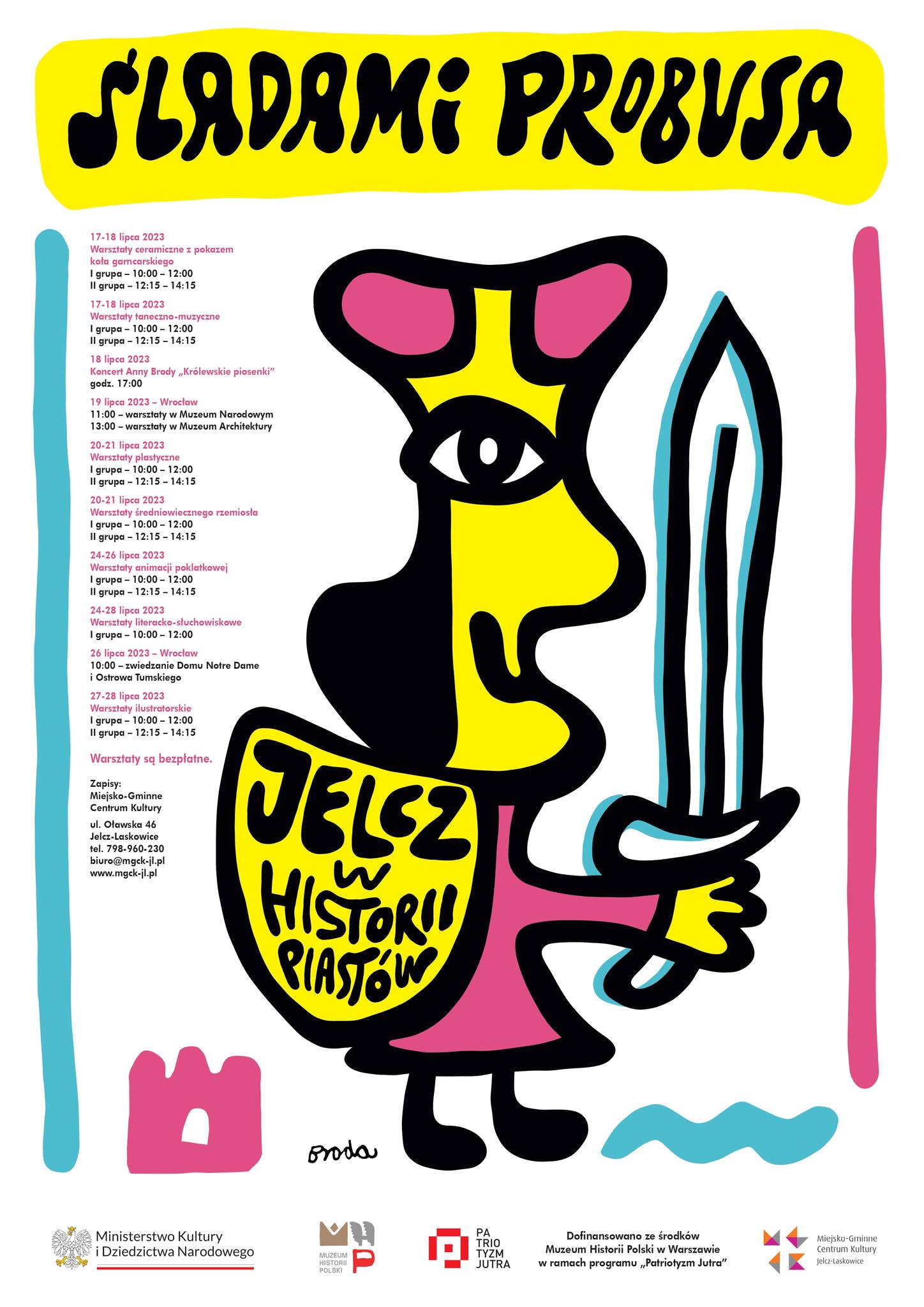 Projekt "Śladami Probusa – Jelcz w historii Piastów" dofinansowano ze środków Muzeum Historii Polski w Warszawie w ramach programu "Patriotyzm Jutra". Autorem plakatu jest artysta Tomasz Broda.