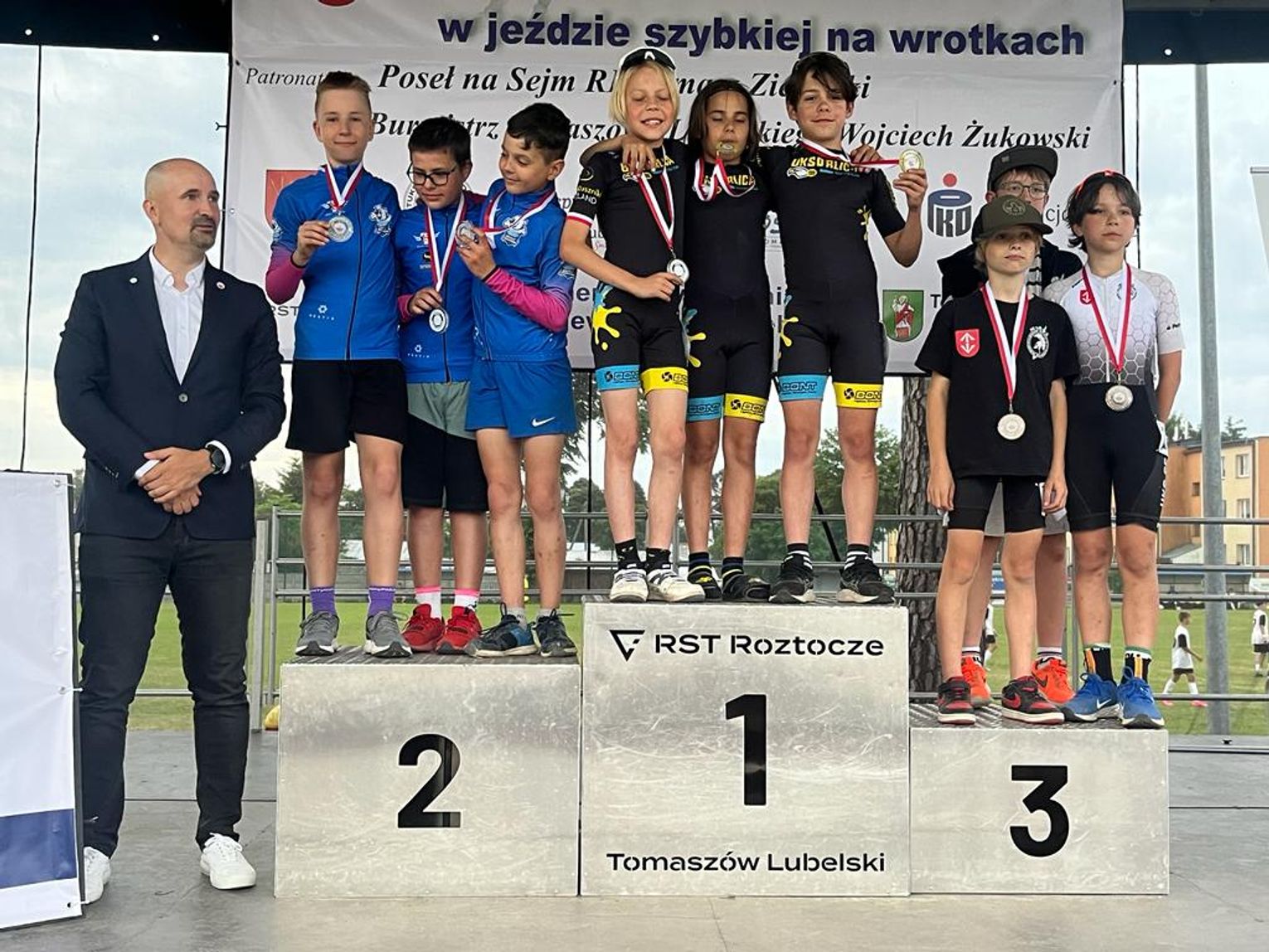 W dniach 10-12 czerwca w Tomaszowie Lubelskim odbyły się Torowe Mistrzostwa Polski w jeździe szybkiej na rolkach. W najważniejszych zawodach sezonu na profesjonalnym 200-metrowym torze wrotkarskim startowało ponad 300 zawodników z całej Polski, w tym mieszkańcy naszego powiatu bracia bliźniacy Marek i Wojtek Motałowie. Chłopaki wraz ze swoim klubowym kolegą Szymonem Hotałą zdobyli mistrzostwo Polski młodzików w sztafecie na dystansie 3000 m. Nasi rolkarze szybcy startowali też w konkurencjach indywidualnych, w których również świetnie się zaprezentowali: Wojtek zajął 4 miejsce w sprincie na 200 m i 5 miejsce w wyścigu na 500 m. Marek uplasował się na 5 pozycji w wyścigu na dystansie 2000 m na punkty i na 6 miejscu w biegu na 200 m i 500 m.