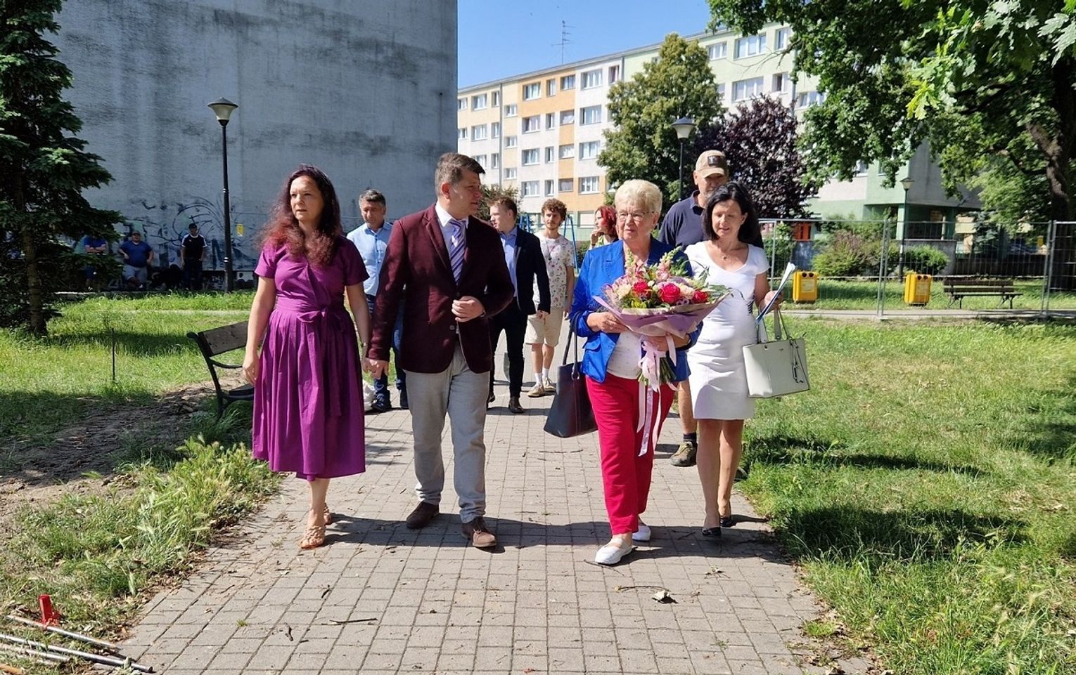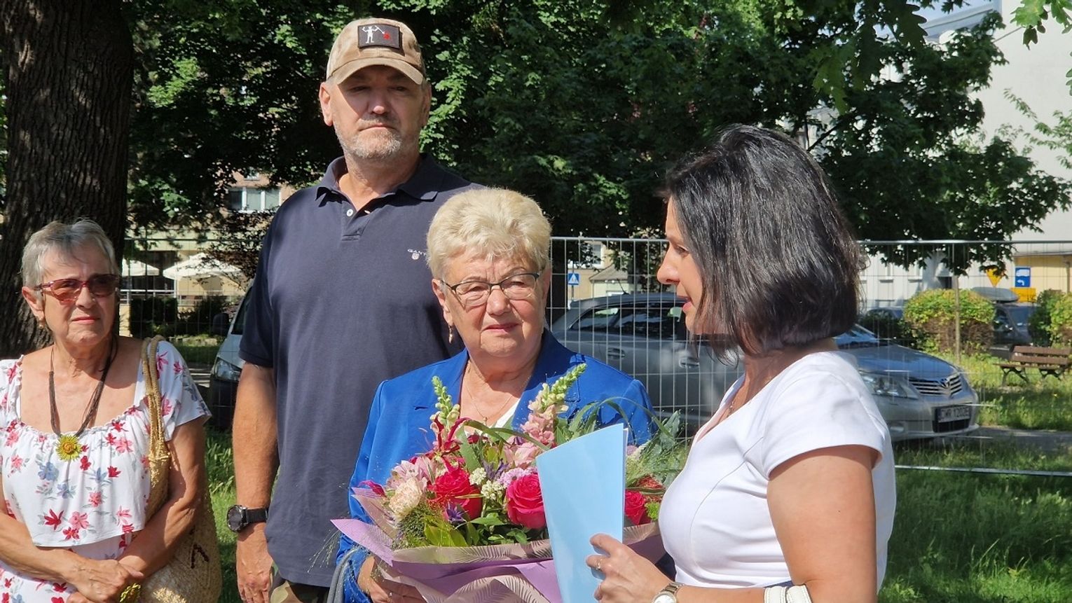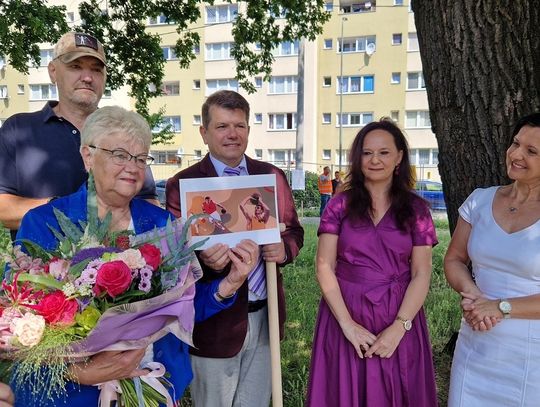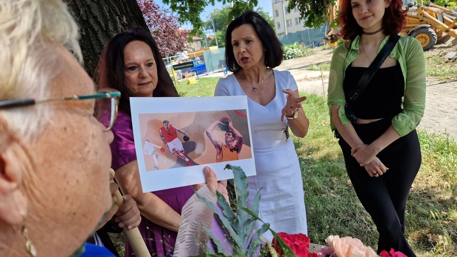 Jak podkreślił burmistrz Tomasz Frischmann jest to swojego rodzaju prezent urodzinowy dla Pani Heleny, która kilka dni temu obchodziła swój jubileusz. Na uroczystości obecni byli również przedstawiciele Urzędu Miejskiego, ZWiK Sp. z o. o. w Oławie oraz laureaci konkursu na projekt zagospodarowania terenu. Nie kryjąc wzruszenia mama Adama Wójcika podziękowała wszystkim zaangażowanym w tę inwestycję, Przypominamy, że projekt obejmuje wykonanie na skwerze m.in.: boiska do mini koszykówki, placu zabaw, kurtyny wodnej, zdroju ulicznego oraz małej architektury w postaci m.in. ławek, stojaków na rowery, pergoli. Miejsce będzie w sposób szczególny przypominało naszym mieszkańcom oraz osobom przyjezdnym jednego z najlepszych polskich koszykarzy.