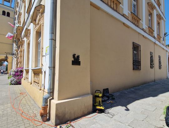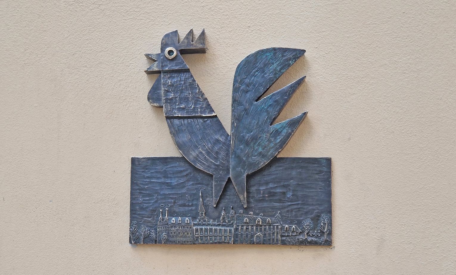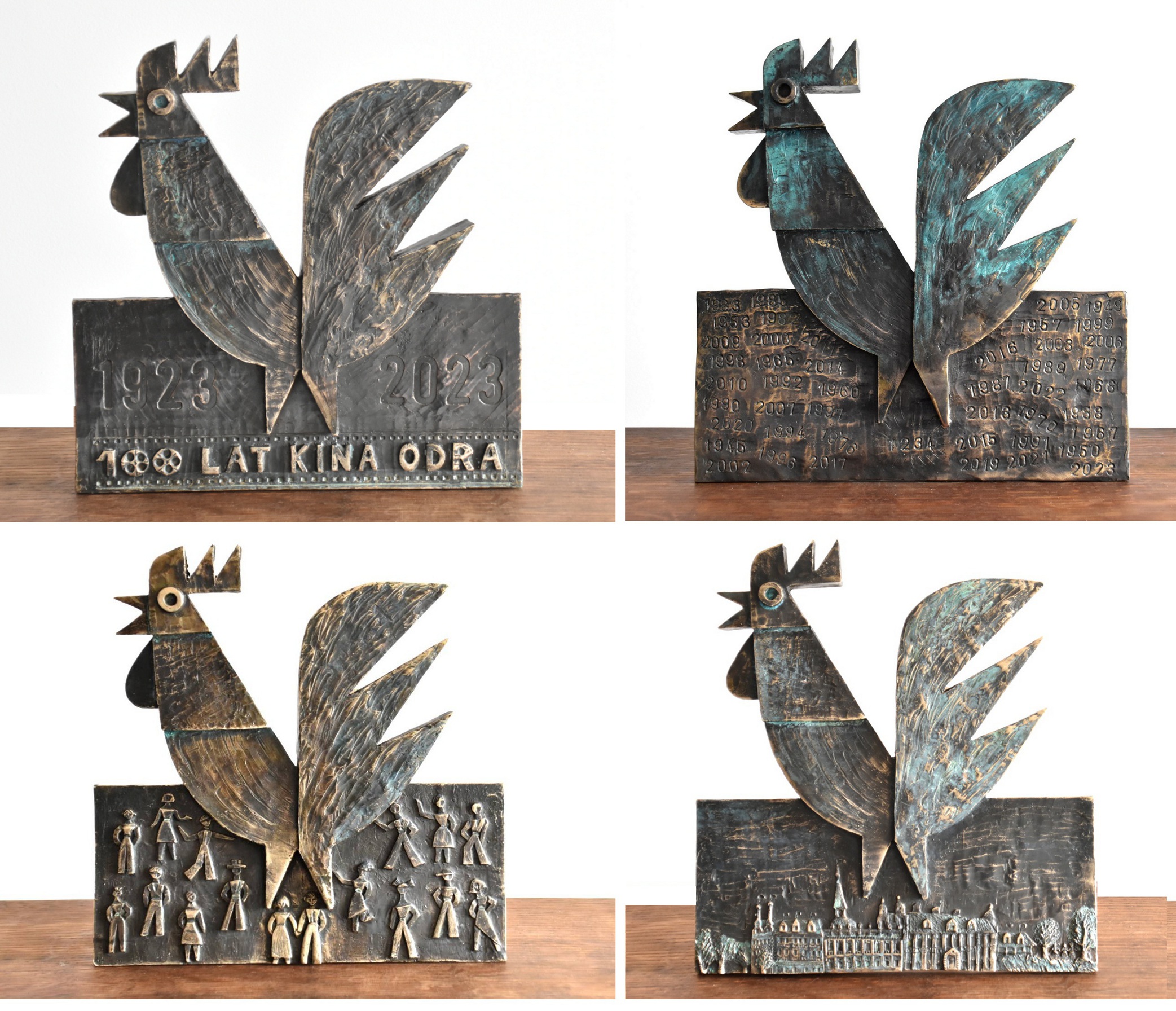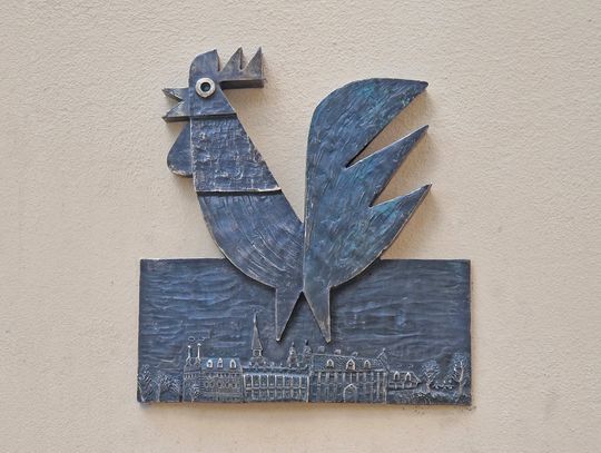 Elementem wyróżniającym płaskorzeźbę wykonaną z brązu jest zabytkowy kompleks pałacowy. To już trzecia płaskorzeźba oławskiego koguta w przestrzeni miejskiej, poprzednie zamontowano w Kinie Odra oraz na oławskim ratuszu. Kolejne koguty planowane są na budynku Urzędu Stanu Cywilnego, na hali sportowej, Miasteczku i ulicy Brzeskiej. Autorem prac jest oławski artysta Jan Herba. W przyszłości, wzorem „Przewodnika po oławskich zabytkach”, maisto chce przygotować mapę „Szlakiem Oławskich Kogutów