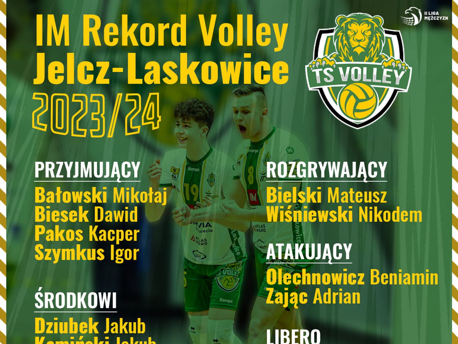 Sylwetki 14 siatkarzy "Jelczańskich Lwów", którzy powalczą w II lidze siatkówki mężczyzn można znaleźć na facebookowym profilu klubu. Nie zmienili się trenerzy, te role wciąż będą pełnić Krzysztof Janczak i Krzysztof Pilawa. Zespół złożony jest z młodych, perspektywicznych i głodnych sukcesu zawodników. Skompletowana kadra jest najmłodsza w historii klubu, a średnia wieku wynosi 21,5.