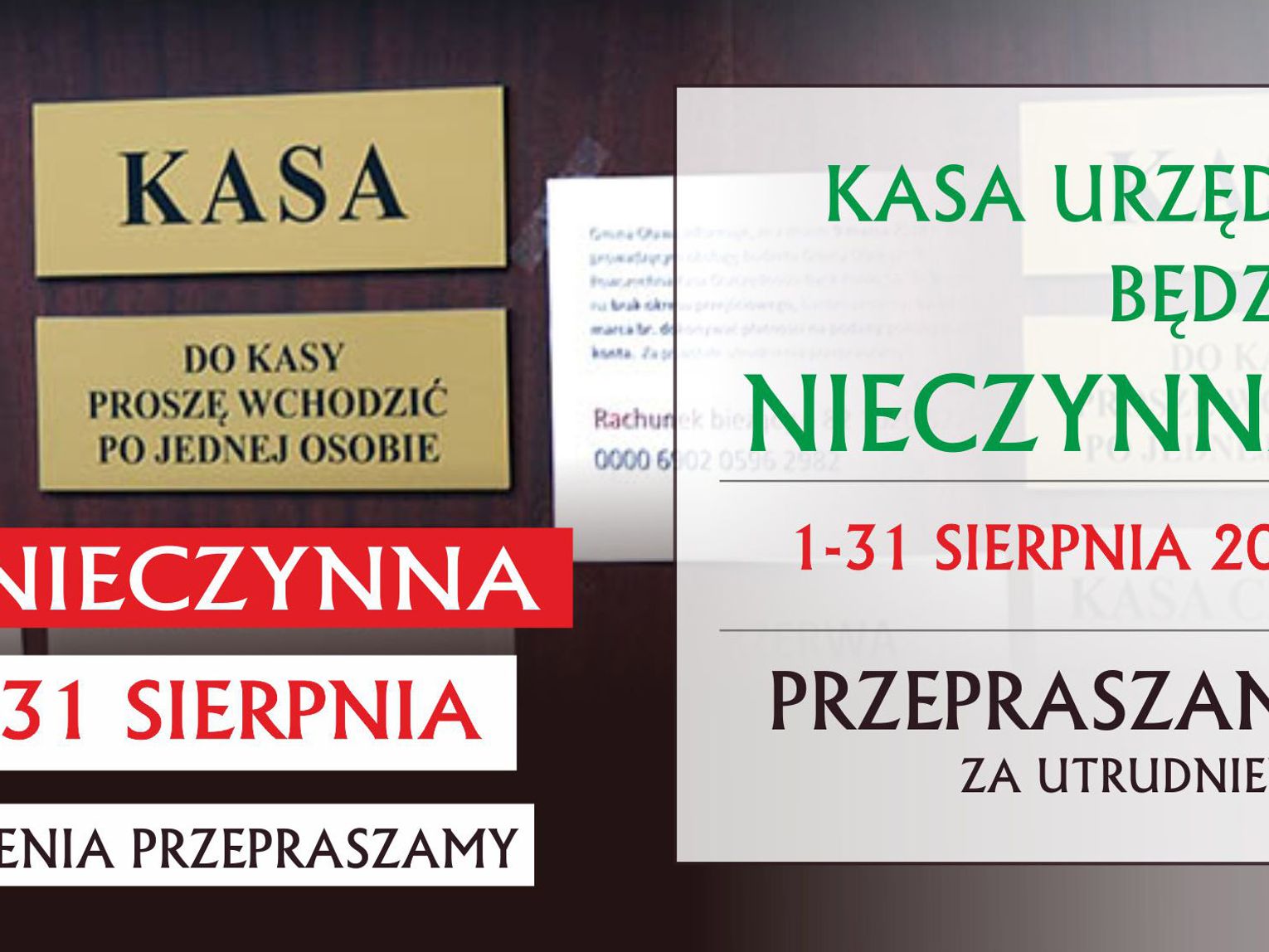 W sierpniu kasa Urzędu Gminy będzie nieczynna