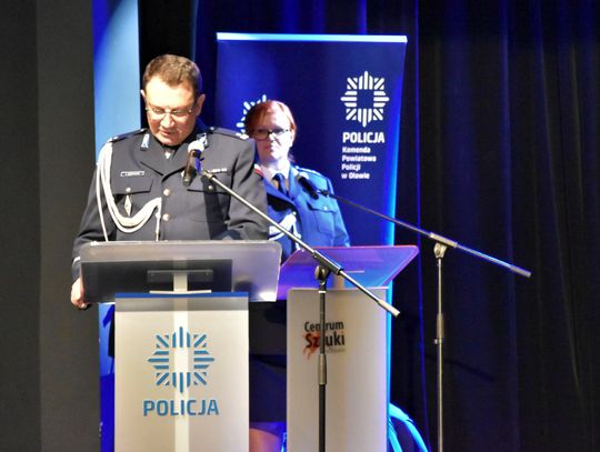 Uroczystą zbiórkę rozpoczął przemówieniem komendant powiatowy, podinsp. Artur Dobrowolski, który podziękował policjantkom, policjantom oraz pracownikom cywilnym za codzienną, ciężką, profesjonalną i sumienną służbę. Przypomniał, że służba i praca w policji jest zaszczytem wymagającym poświęcenia nie tylko ze strony funkcjonariuszy, pracowników cywilnych, ale również ich rodzin i bliskich, za co im też serdecznie dziękuje. Dodał, że współpraca z takimi ludźmi to wielki zaszczyt i przyjemność.