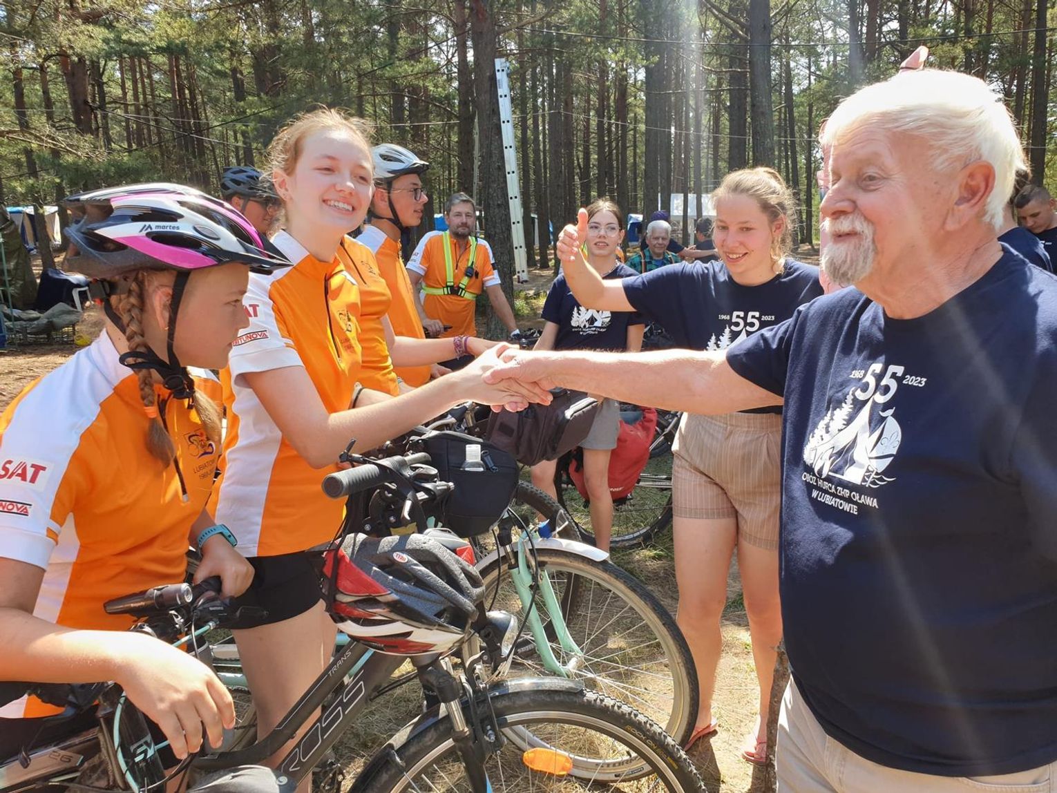 W sumie na całej trasie schodzili z siodełek jedynie na jakieś 1500 metrów, więc wcześniejsze przygotowanie drogi okazało się praktycznie perfekcyjne, podobnie jak zapewnienie bezpieczeństwa uczestnikom wyjazdu (zabezpieczenie przejazdu przez miasto doskonale widać na jednym z filmików na profilu facebookowym obozu). Najtrudniejszy odcinek wyprawy to część kaszubska, kiedy trzeba było jechać w terenie pagórkowatym i to często po piachu - przewyższenie około 600 metrów.