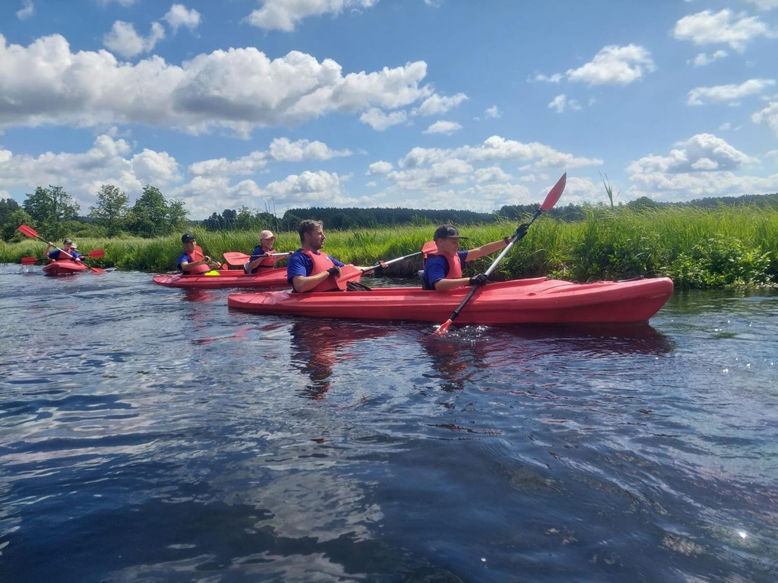 Spływ kajakowy na trasie był zaplanowany wcześniej. Uczestnicy zsiedli z rowerów, przepłynęli 7 km kajakami, a potem organizatorzy przywieźli ich w miejsce startu, gdzie ponownie wsiedli na rowery i pojechali. Generalnie ludzie na trasie odbierali ich bardzo pozytywnie. Trafił się na przykład darmowy deser po obiedzie, a gdy jednemu z uczestników złamał się bagażnik, sklep rowerowy z Oleśnicy opuścił cenę nowego, gdy dowiedział się o obozie.