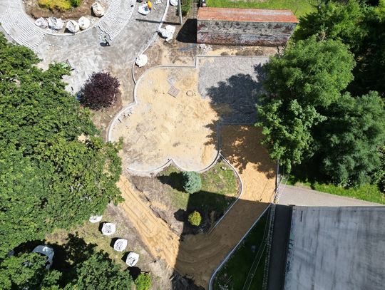 Trwają prace przy budowie skweru Adama Wójcika. Przypominamy, że projekt obejmuje wykonanie m.in.: boiska do mini koszykówki, placu zabaw, kurtyny wodnej, zdroju ulicznego oraz małej architektury w postaci m.in. ławek, stojaków na rowery, pergoli. Miejsce będzie w sposób szczególny przypominało naszym mieszkańcom oraz osobom przyjezdnym jednego z najlepszych polskich koszykarzy.