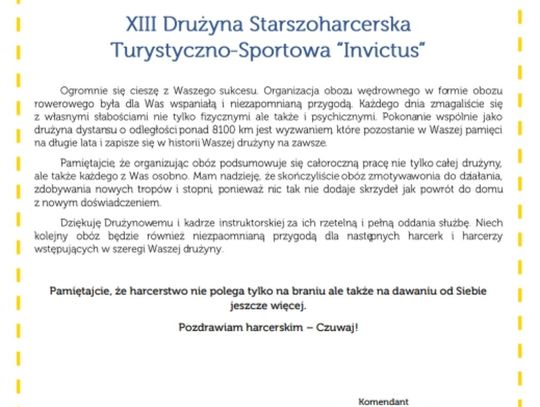 Warto odnotować, że komendant Chorągwi Dolnośląskiej ZHP, druh hm. Arkadiusz Rudolf wystosował do oławskiej drużyny list gratulacyjny.