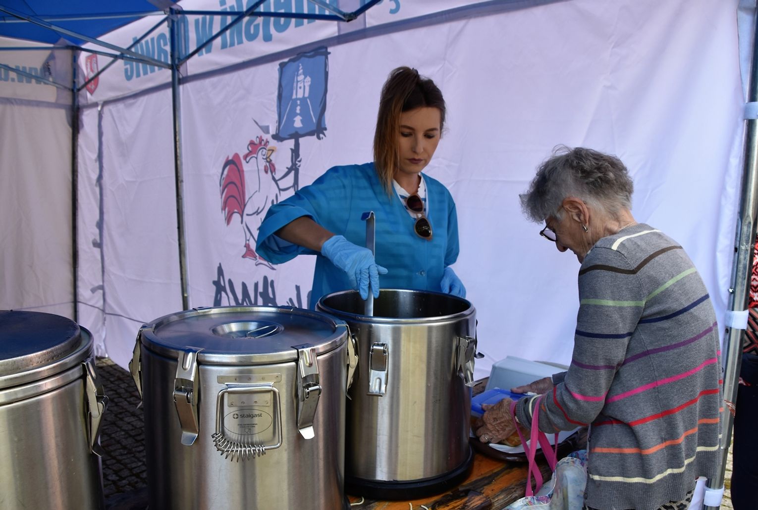 To zadanie UM przejął od Caritasu, którego siedziba jest w remoncie. Zupa jest wydawana w dni robocze, w godz. 9-45-10.45 w namiocie nieopodal budynku Caritasu. Miasto pokrywa koszt tej akcji. Codziennie przygotowywane są porcje dla 100 osób. Należy wziąć własne naczynie.