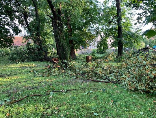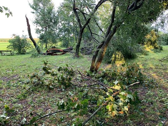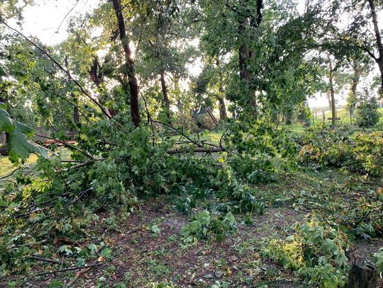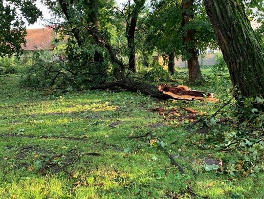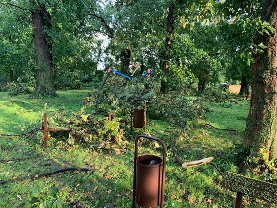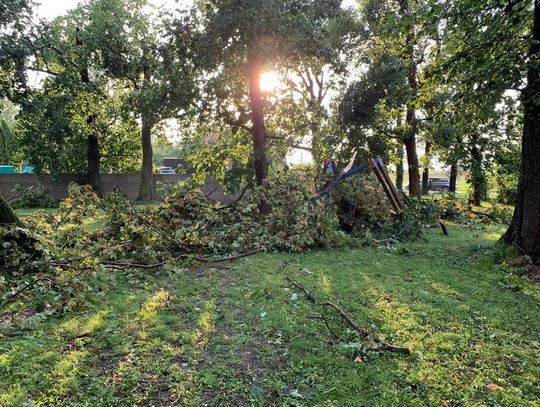 - W wioskowym parku kilkanaście powalonych drzew, drzewa na liniach energetycznych, pozrywane dachówki, uszkodzone dachy, bardzo duża ilość wody - pisze pan Radosław. - W jednym momencie pięć zastępów straży u nas pracowało. Plac zabaw w parku został zniszczony. Było widać zalążek trąby...