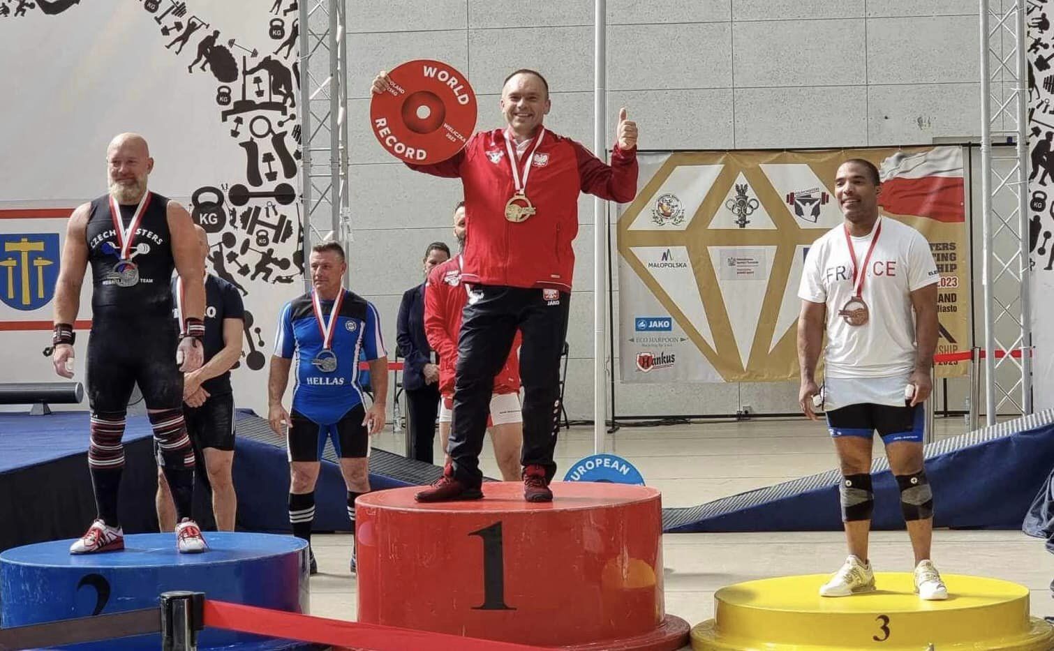 Adam wywalczył złoty medal w kat. +109 kg w grupie wiekowej 45-49. Wyrwał 136 kg, podrzucił 160 kg, co dało 296 kg w dwuboju!