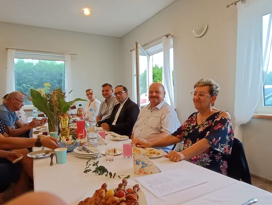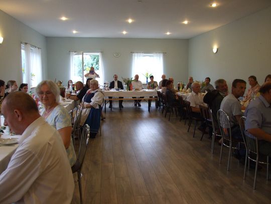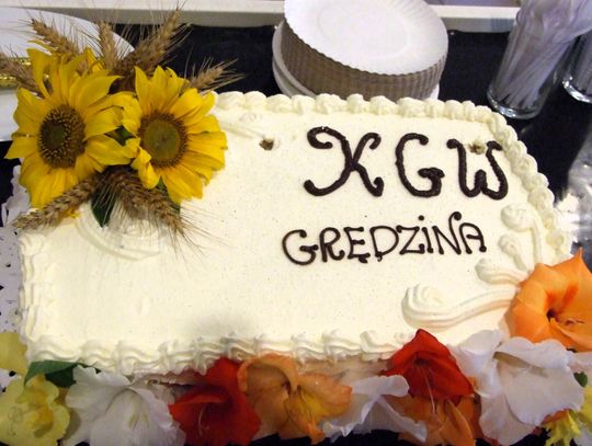 Podczas tej uroczystości obchodziłyśmy także jubileusz naszego Koła Gospodyń. Po dociekaniach historycznych dotarłyśmy do zdjęć, które świadczą o tym, że Koło zmieniając się z biegiem czasu, działa w Grędzinie ponad 75 lat. Jest to dla nas powód do dumy. Nasze Panie przygotowały z tej okazji okazały tort domowej roboty, a sołtys ufundował prezent dla Koła i wręczył paniom symboliczny klucz do świetlicy.