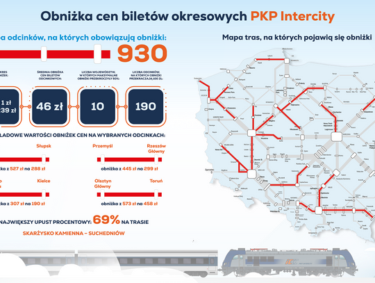 Jak informuje Zespół Prasowy PKP Intercity S.A., PKP Intercity wchodzi w nowy rok szkolny z dużymi obniżkami cen biletów miesięcznych. W ten sposób ten przewoźnik chce zachęcić kolejnych pasażerów do wybierania ekologicznego środka transportu, jakim jest kolej. Aby zachęcić podróżnych do korzystania z kolei, PKP Intercity postanowiło uatrakcyjnić ceny biletów okresowych w województwie dolnośląskim. W efekcie wprowadzono zniżki na 157 odcinkach.