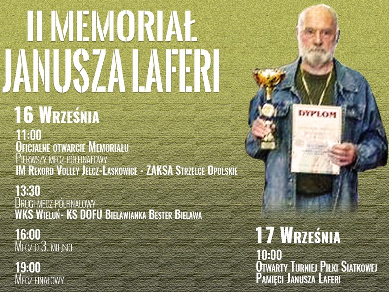 W mediach społecznościowych klubu czytamy: - Po wakacyjnej przerwie wracamy z siatkarskimi emocjami do Centrum Sportu i Rekreacji. Serdecznie zapraszamy kibiców na Memoriał poświęcony pamięci wieloletniego trenera, nauczyciela i wychowawcy młodzieży - Janusza Laferiego. II edycję Memoriału Janusza Laferiego rozegramy w formule dwudniowej. Na sobotę zaplanowaliśmy turniej główny z udziałem zespołów II Ligi Siatkówki Mężczyzn PZPS. Wezmą w nim udział zespoły: WKS Wieluń, KS DOFU Bielawianka Bester Bielawa, ZAKSA Strzelce Opolskie oraz jako gospodarze IM Rekord Volley Jelcz-Laskowice. Do zobaczenia na trybunach. Wstęp wolny. W niedzielę rozegrany zostanie Otwarty Turniej Siatkówki Pamięci Janusza Laferiego. Informację o zgłoszeniach do turnieju zamieścimy na stronie wydarzenia, więc bądźcie czujni. Liczymy, że w niedzielę 17.09 spotkamy się na parkiecie hali CSiR z wieloma wychowankami trenera Laferiego! Liczymy na wielkie turniejowe emocje! Organizacja Memoriału jest możliwa dzięki wsparciu finansowemu Urzędu Miasta i Gminy Jelcz-Laskowice.