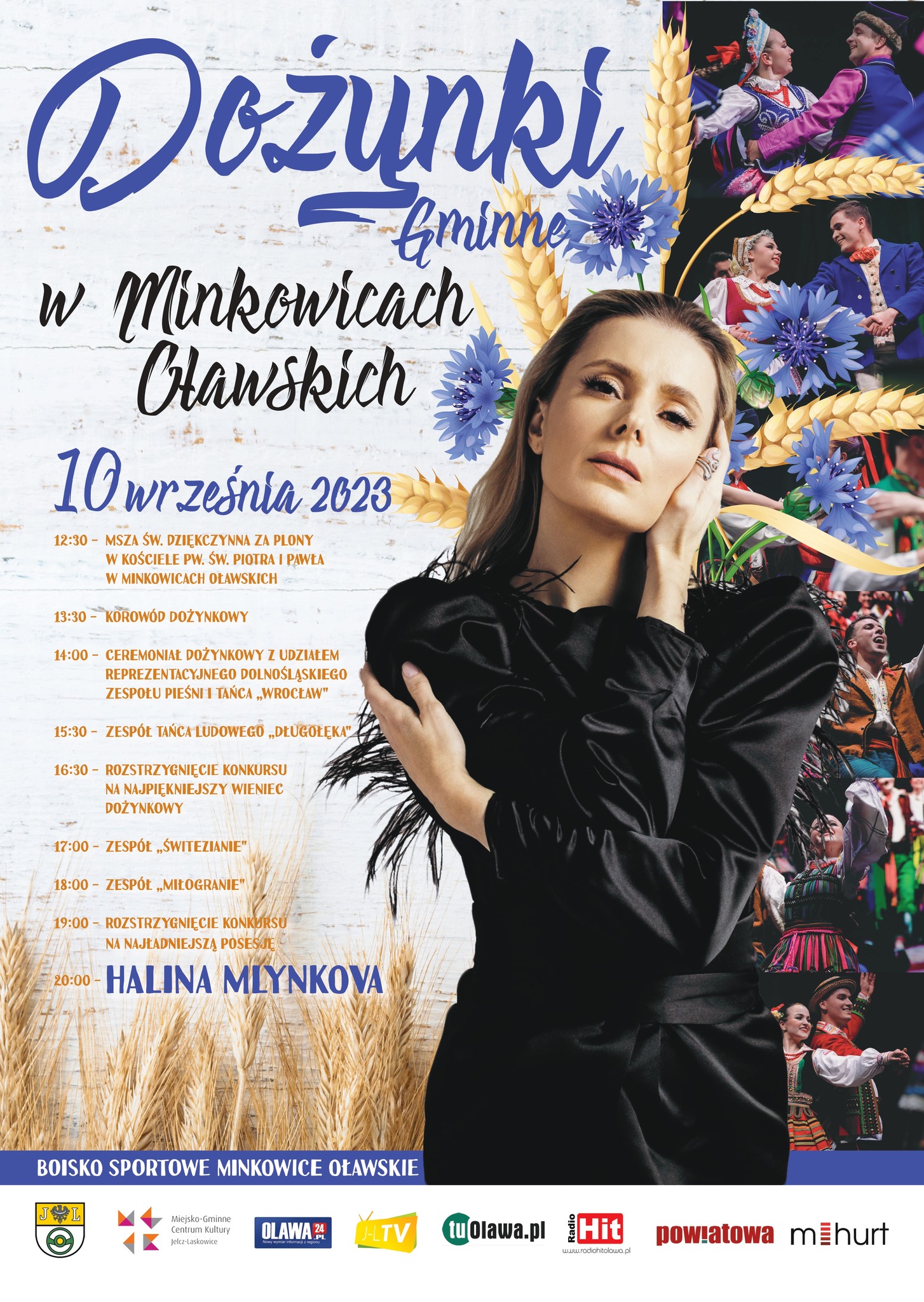 Tegoroczne DOŻYNKI GMINNE W MINKOWICACH OŁAWSKICH będą prawdziwym świętem muzyki ludowej. Po ceremoniale dożynkowym, który ubarwi śpiewem, tańcem, obfitością kolorów Reprezentacyjny Dolnośląski Zespół Pieśni i Tańca Wrocław, wystąpią kolejne zespoły z ludowym repertuarem. Działający przy MGCK zespół Świtezianie, wielopokoleniowy zespół MiłoGranie oraz Zespół Tańca Ludowego Długołęka. Zapowiada się prawdziwe święto pieśni, tańca i zabawy. Zapraszamy w imieniu zespołów.