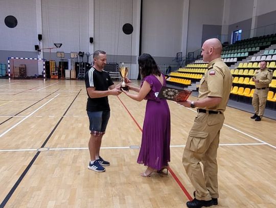 Puchary i dyplomy, wraz z zastępcą komendanta wręczała Żona Mariusza Pasztetnika, która co roku odwiedza nas podczas zmagań sportowych. W tym roku minęło 20 lat od tamtej tragicznej nocy, gdy dwaj nasi Koledzy zginęli podczas akcji gaśniczej. Pamiętamy i będziemy pamiętać. Naszym Gościom gratulujemy i dziękujemy za udział w tym bardzo ważnym symbolicznie Turnieju