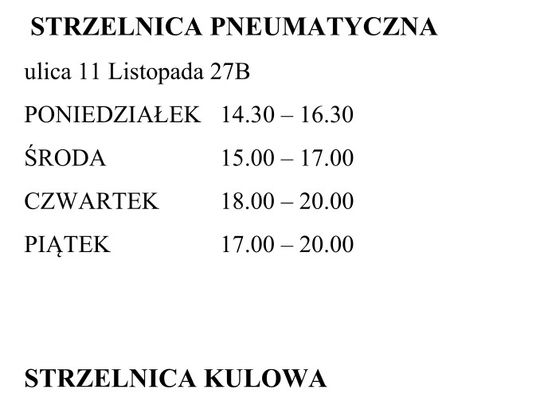 Godziny otwarcia strzelnicy - na planszy niżej.