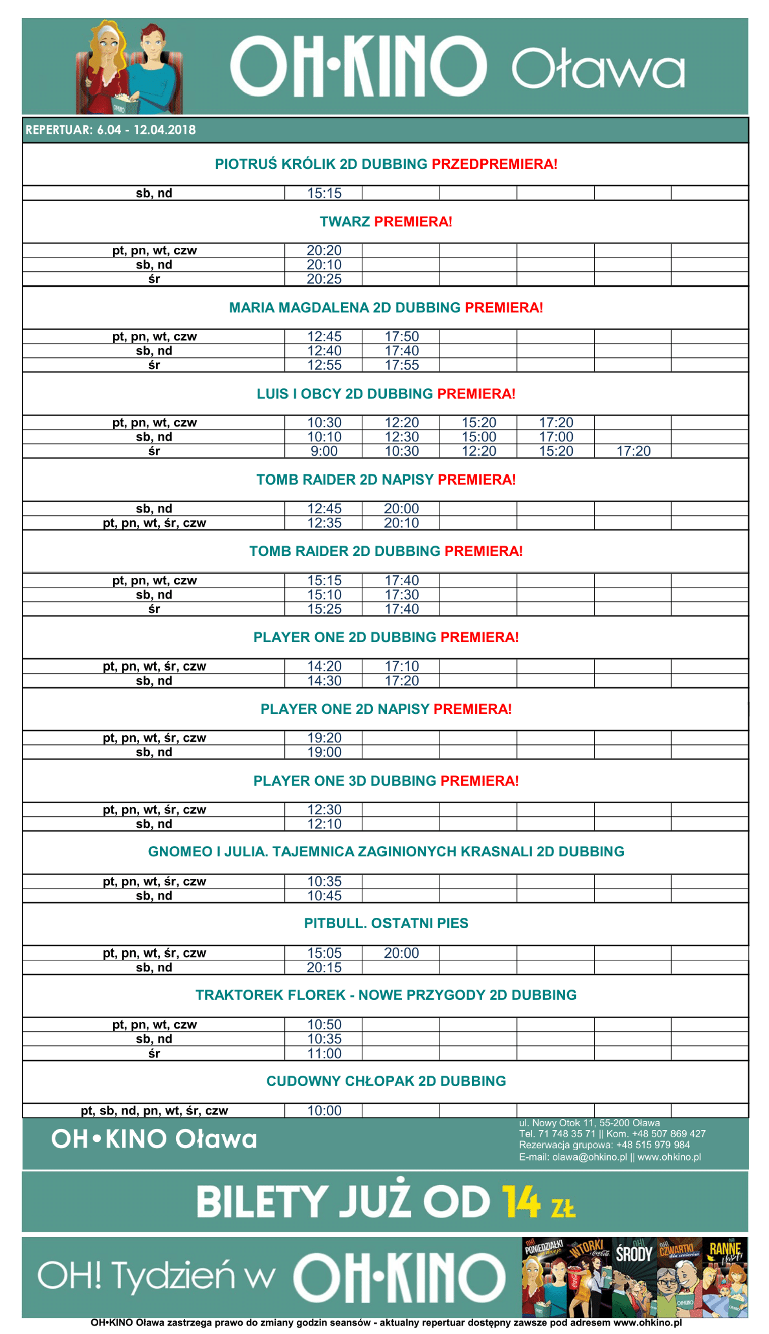 W piątek 6 kwietnia kolejne nowości meldują się na ekranach oławskiego OH Kino.