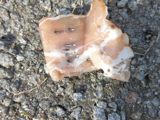 - Dzień dobry, ku przestrodze, wał za Lidlem, świeże kawałki mięsa z gwoździami - informuje z kolei pani Marta (fotki pokarmu z gwoździami - niżej).