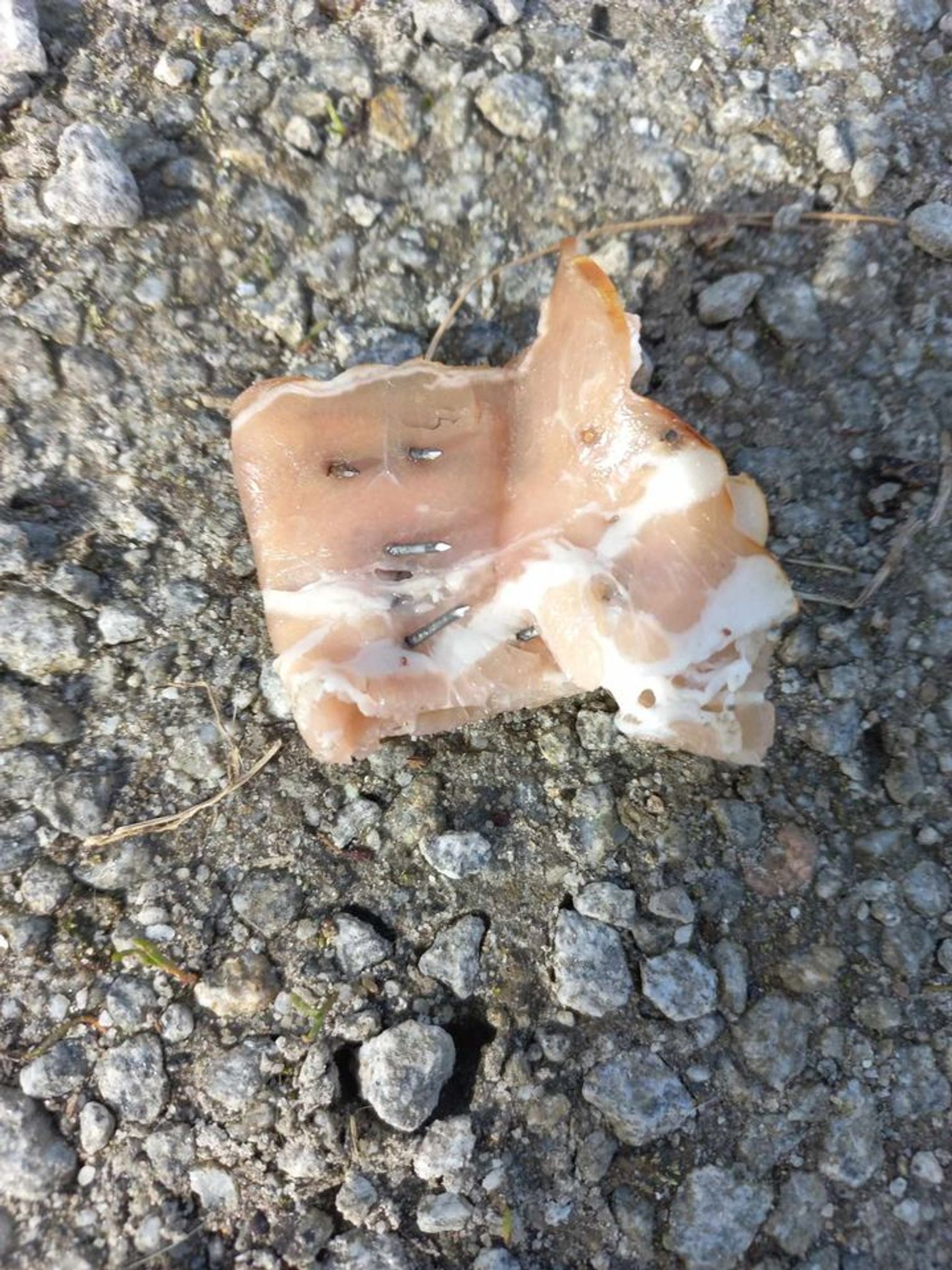 - Dzień dobry. Proszę o nagłośnienie sprawy, na wale koło Lidla ktoś znowu rozrzuca mięso z gwoździami - ostrzega pani Klaudia i też podsyła fotki (niżej)