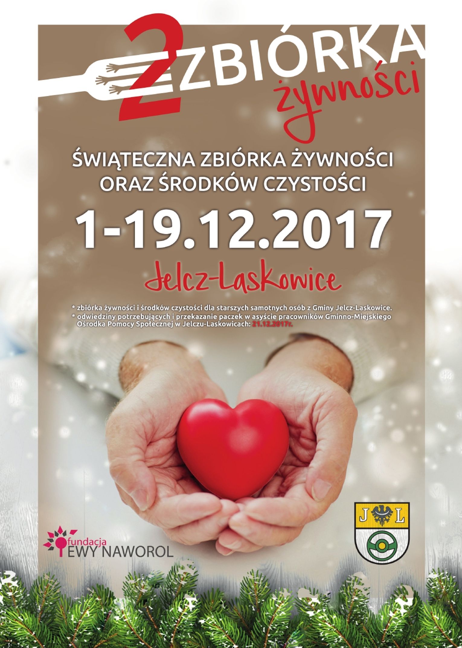 Już po raz drugi, Fundacja Ewy Naworol przy współpracy z Miejsko-Gminnym Ośrodkiem Pomocy Społecznej w Jelczu-Laskowicach, organizuje Świąteczną zbiórkę żywności, środków czystości oraz rzeczy potrzebnych. Zbiórka dla starszych, samotnych mieszkańców z terenu Gminy Jelcz Laskowice, są to osoby którym często brakuje na podstawowe produkty żywnościowe, które większą część emerytury bądź renty przeznaczają na leki. Osoby, które chcą wesprzeć Świąteczną Akcję mogą przynosić produkty żywnościowe oraz środki czystości pod wskazane punkty: