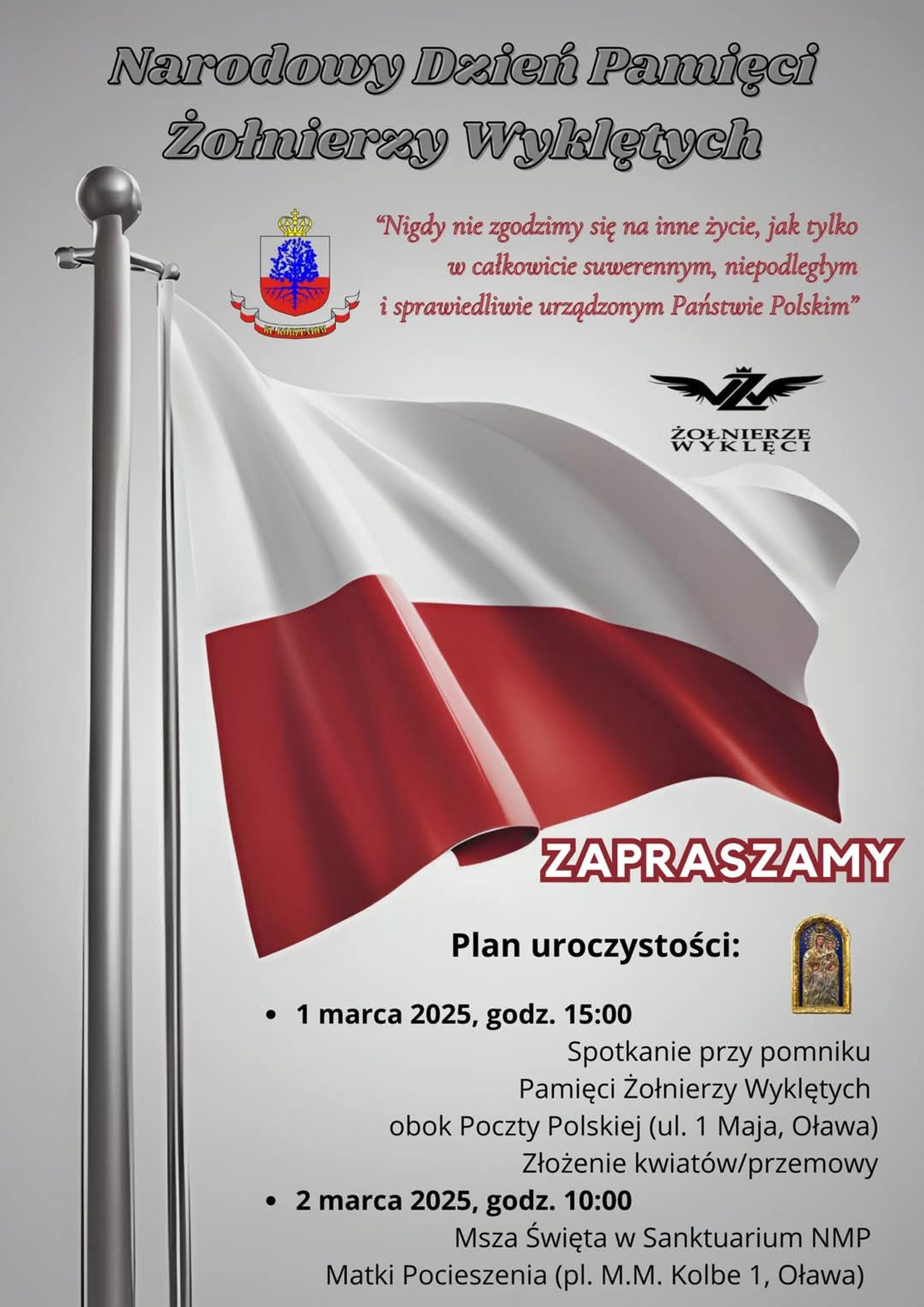 - Spotkanie przy pomniku Pamięci Żołnierzy Wyklętych obok Poczty Polskiej (ul. 1 Maja, Oława)
