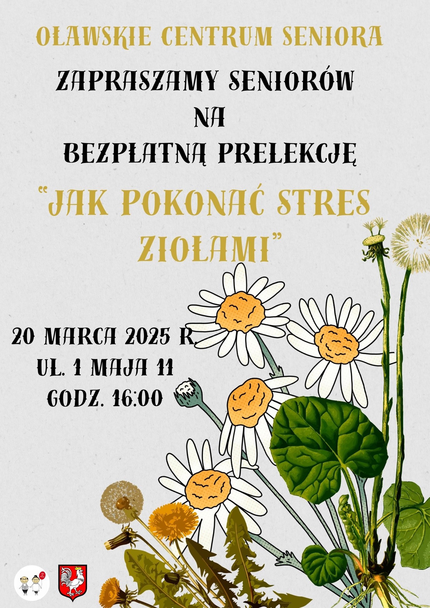 Oławskie Centrum Seniora zaprasza 20 marca na bezpłatna prelekcję "Jak pokonać stres ziołami"