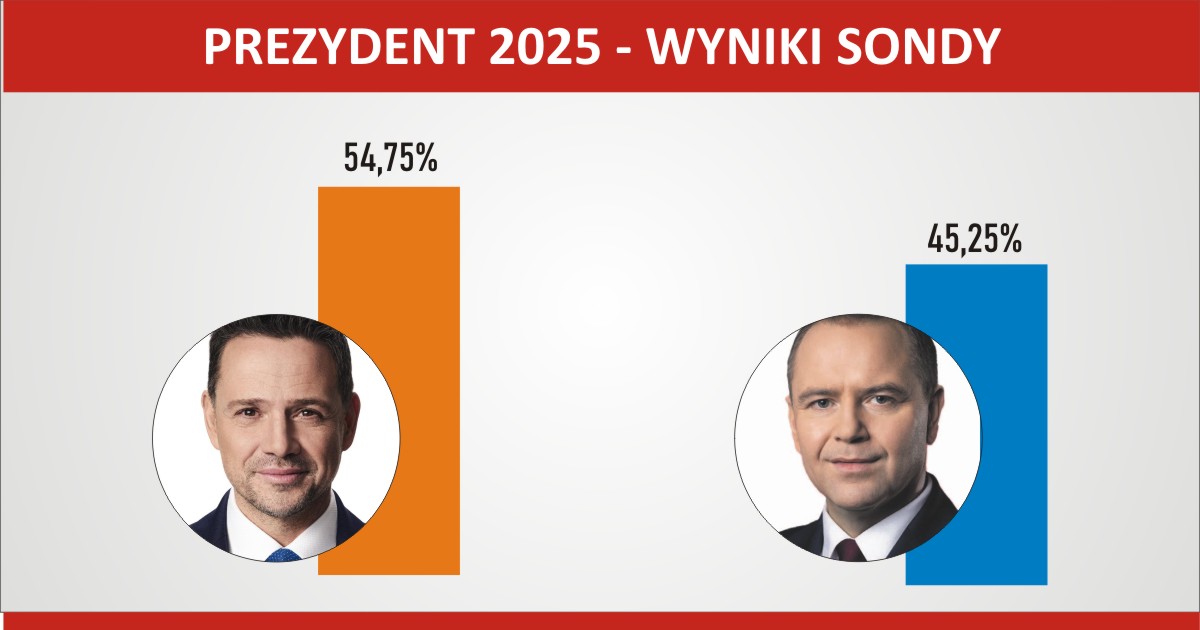Tuż po pierwszej turze wyborów prezydenckich zapytaliśmy o Wasze preferencje wyborcze. Ankietę uruchomiliśmy na portalu 19 maja i przez następne 12 dni głosowaliście w naszej sondzie. Z jednego IP można było oddać tylko jeden głos. W ankiecie wzięło udział 2829 osób. Rafał Trzaskowski otrzymał 1549 głosów, zaś Karol Nawrocki otrzymał 1280 wskazań. Bardzo dziękujemy za udział w naszej zabawie.
