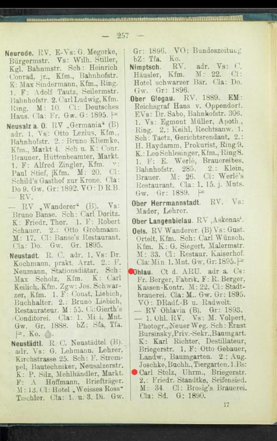 O tej samej firmie Wojtek Tetlak pisał już rok temu, tyle że wtedy chodziło o szczątki zegarka kieszonkowego z grawerem. - Po krótkich poszukiwaniach i nieodzownej pomocy przyjaciółki Ewy odnalazł się sklep/zakład, z którego pochodził grawer - pisał wtedy Wojtek. - Udało się odnaleźć wzmiankę, że firma Carla Stolza należała do niemieckiego klubu rowerowego. Co ciekawe, do klubu należał między innymi Max Volpert - znany nam oławski fotograf. Założycielem pierwszego klubu/stowarzyszenia rowerowego był Carl Hindenburg w Magdeburgu, w roku 1869, a w Oławie pierwsze stowarzyszenie rowerowe powstało w roku 1890 r. Dotarłem na archiwalnych niemieckich forach do rodziny Stolz i jej opisu historii z tamtych lat: "Znam ten zegar - mowa o wieży ratuszowej - z narracji mojego dziadka Erharda Stolza. który był uczniem mistrza zegarmistrzostwa Alfreda Stolza. W latach 1935-1938 mój dziadek w wieku 15-18 lat miał każdego dnia wchodzić na wieżę, aby nakręcać zegar".