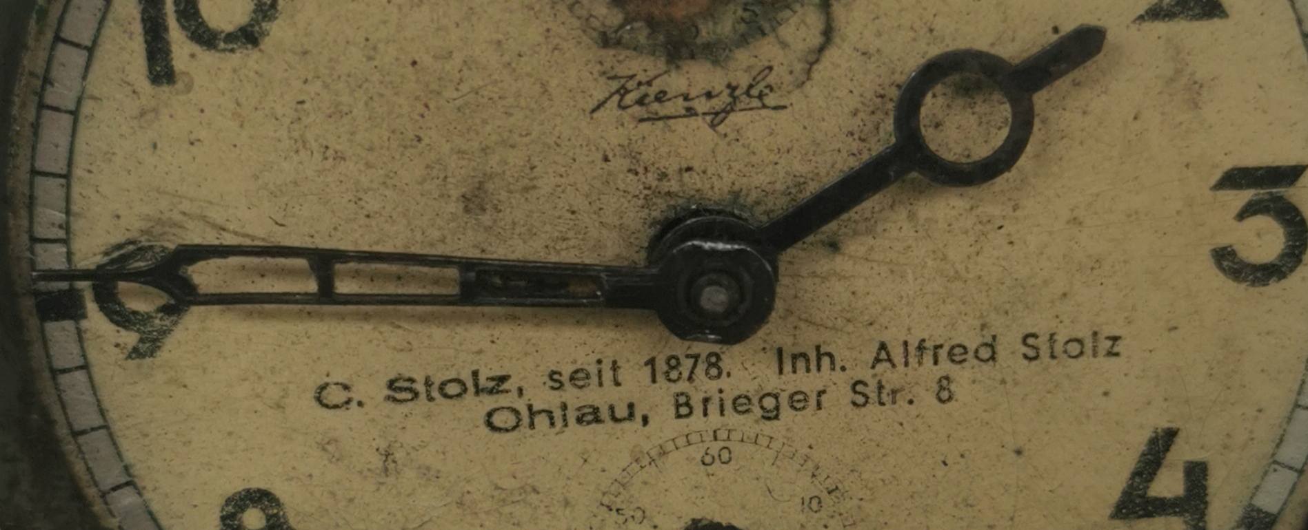 Chodzi o zegar/budzik firmy zegarmistrzowskiej Carl Stolz Ohlau. - Zakład zegarmistrzowski powstał w 1878 i znajdował się na ulicy Briegerstrasse 8 "Brzeska 8", a jego właścicielem był Alfred Stolz - pisze Tetlak. - Zakład był wielobranżowy i oprócz napraw, produkcji zegarków sprzedawano tam biżuterię, artykuły optyczne, a nawet zastawę stołową.